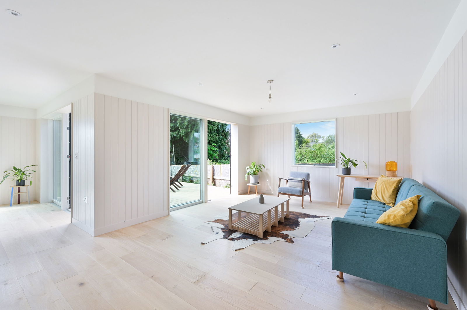 2 Garden Court is one of just two BRAND NEW 2 bedroom contemporary bungalows built by Edgley Design and occupying a quiet location off Salisbury Road only a few minutes walk to Godstone’s delightful historic village centre. The property has been built to provide excellent ENERGY EFFICIENCY and enjoys spacious a bright thoughtfully designed two double bedroom accommodation. Throughout this ‘Eco Home’ there is an abundance of light from the large triple glazed widows which take full advantage southerly aspect to the rear from which there is access to the landscaped rear garden with large decking area and level lawn. The property benefits from private parking and an electric car charging point.