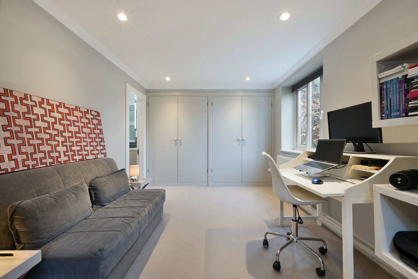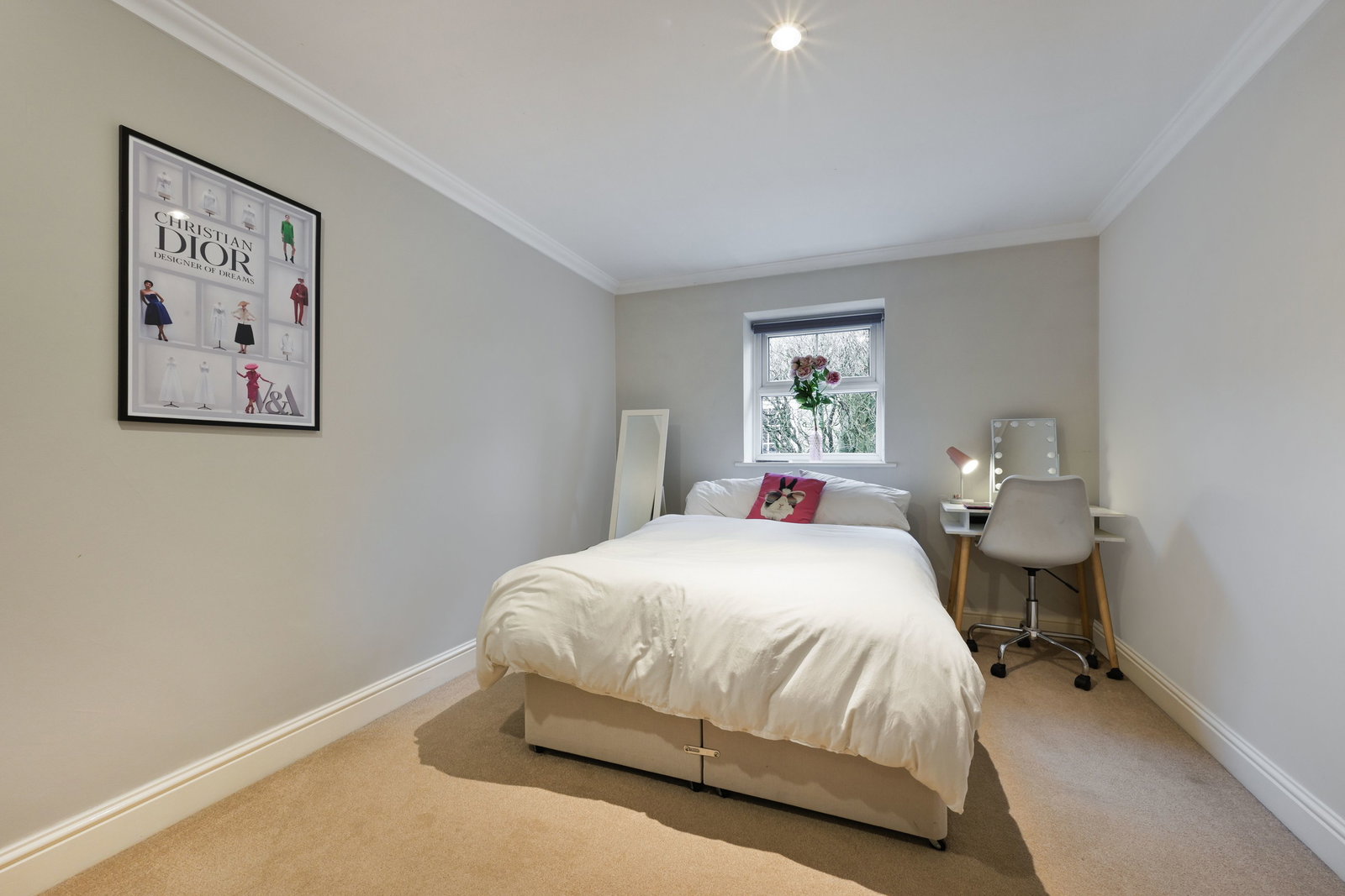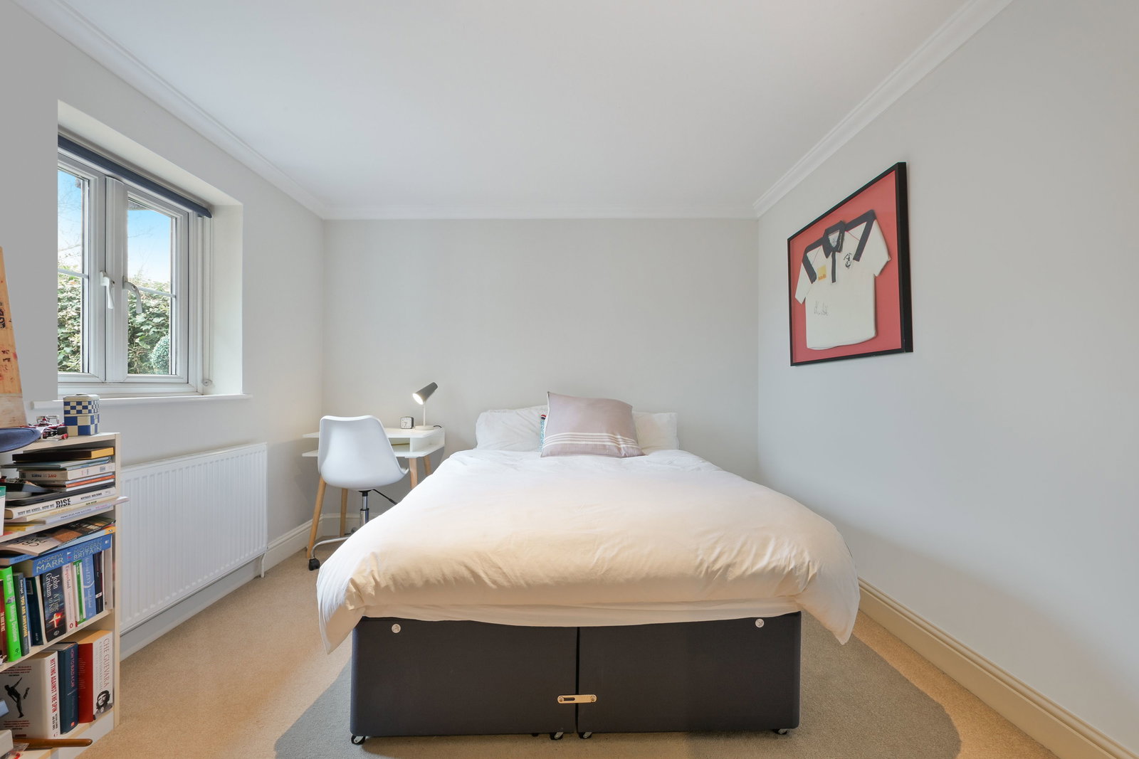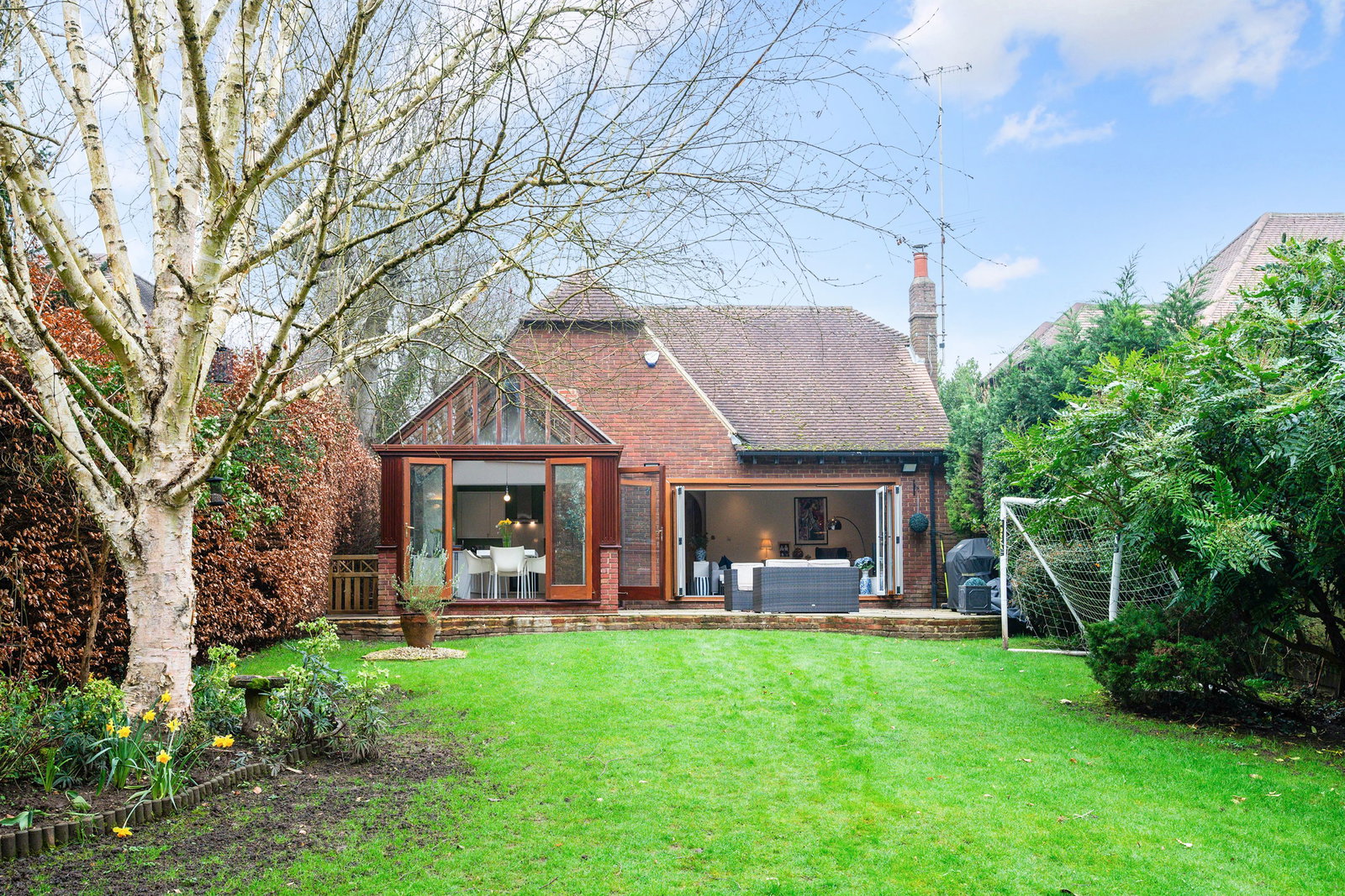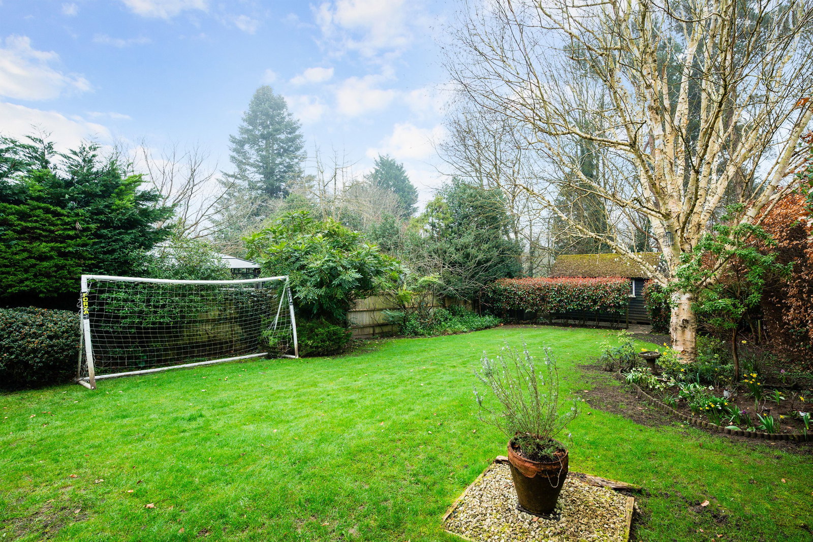 Mature private rear garden laid mainly to lawn with flower borders, beech hedging and ash tree. At the rear of the garden there is a large workshop/shed with potential use for home office/gym.