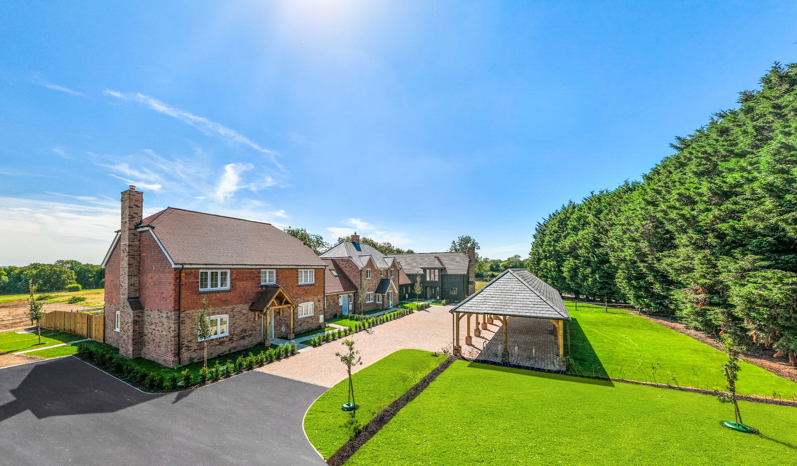 Hookstile Farmstead is a unique gated development of just 3 luxury homes by Fernfield Homes. The development occupies an enviable location amidst Greenbelt countryside over which each house enjoys outstanding southerly views towards Ashdown Forest.