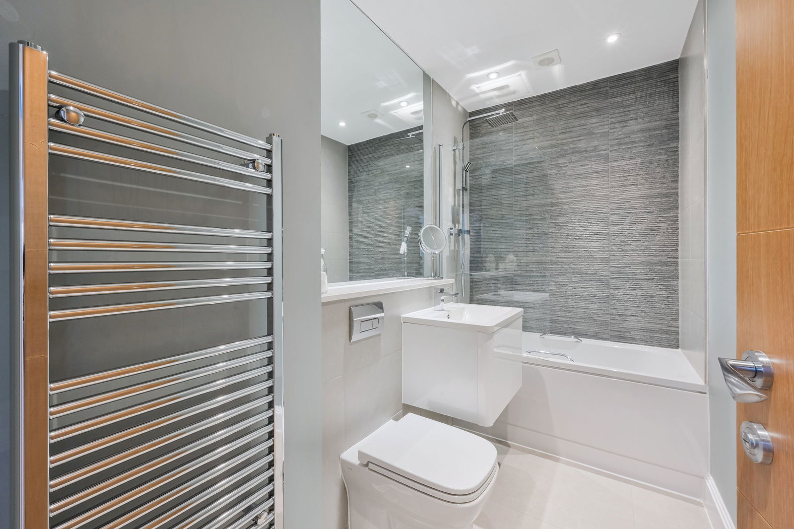 The property offers two well-proportioned double bedrooms, with the principal bedroom benefiting from a stylish en-suite shower room and both with fitted wardrobes. A further good-sized bathroom serves the remaining accommodation. Both bathrooms are finished with modern, high-quality sanitary ware, complementing the overall design of the apartment.