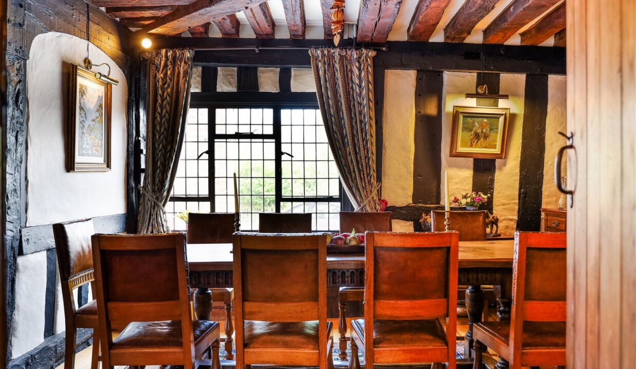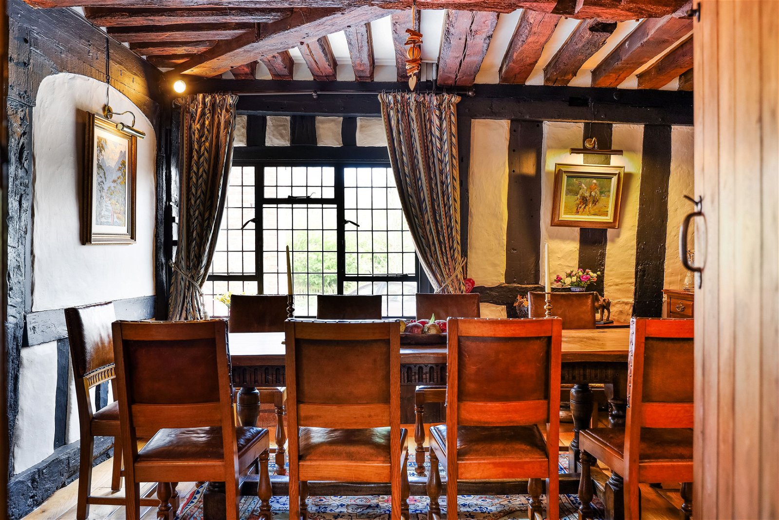 The front door leads into the beautiful dining room, modernised to include underfloor heating, yet retaining all the original features. The spacious living room has an open fireplace and double doors to the patio area and rear garden. An inner hallway accesses the modern fitted kitchen with pantry and door to the garden. There is also a useful downstairs cloakroom and utility area.