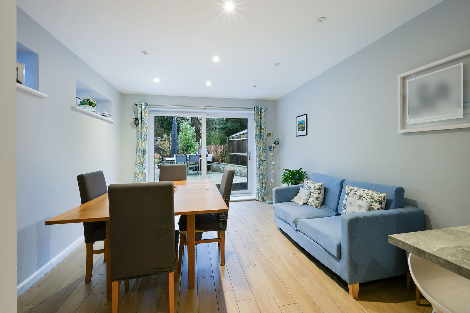 Externally, the property is located on cul se sac and benefits from a driveway, offering convenient off-street parking and looks out onto a pleasant green. The west facing garden is generously sized and provides a pleasant outdoor space for enjoying the warmer months or for gardening enthusiasts. There is a modern garden room which offers a flexible space for a home office, gym, or additional entertaining space.