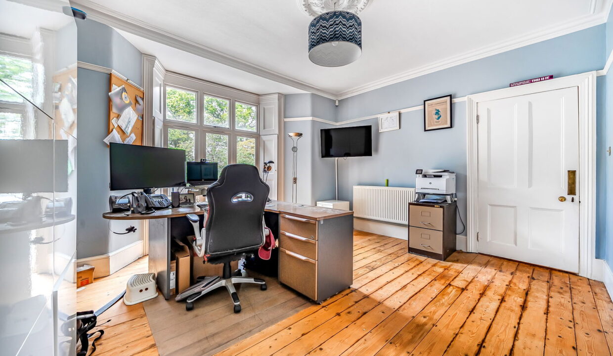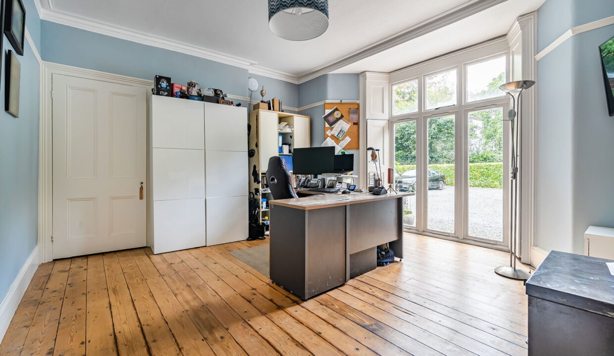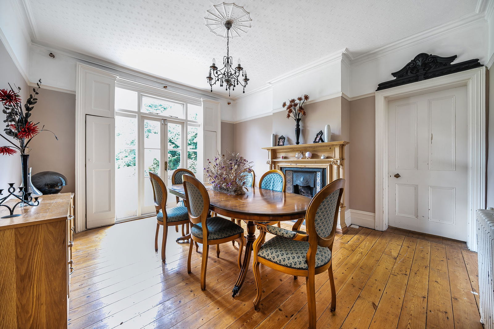 Upon entering the galleried entrance hallway the ground floor comprises of two formal dining rooms, one with rear access to the rear garden and the other currently being used an office/study, a large dual aspect reception room, semi open-plan kitchen connected to an additional reception room/breakfast room, utility room with rear access to the garden, to conclude there is a convenient pantry and downstairs cloakroom. The entirety of the ground floor boasts high ceilings and plenty of natural light. Continuing upstairs to the first floor, you’ll find 5 large double bedrooms, a family shower room and an additional family bathroom with a separate shower. The principle bedroom benefits from built in storage and ensuite bathroom, separate shower with views overlooking the large outstretched rear garden. The sixth and final bedroom, located off one of the double bedrooms and currently used as a cot room/dressing room has the potential to be turned into another ensuite bathroom/shower room.