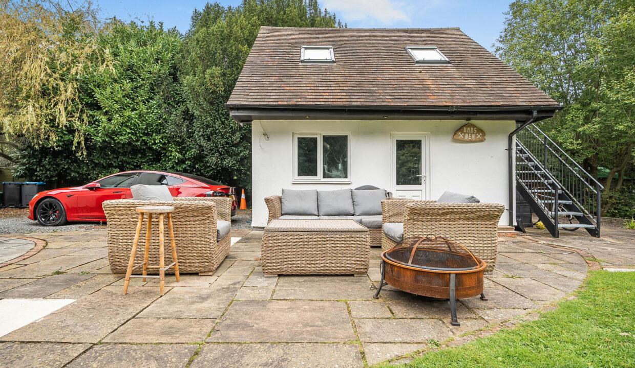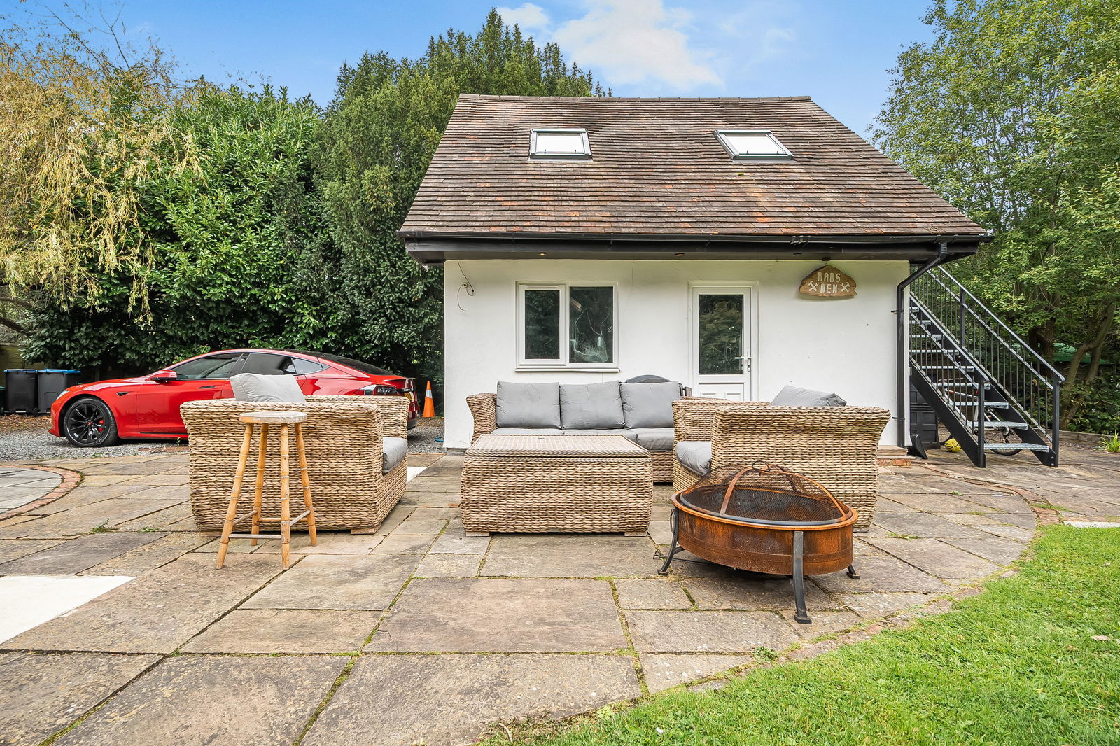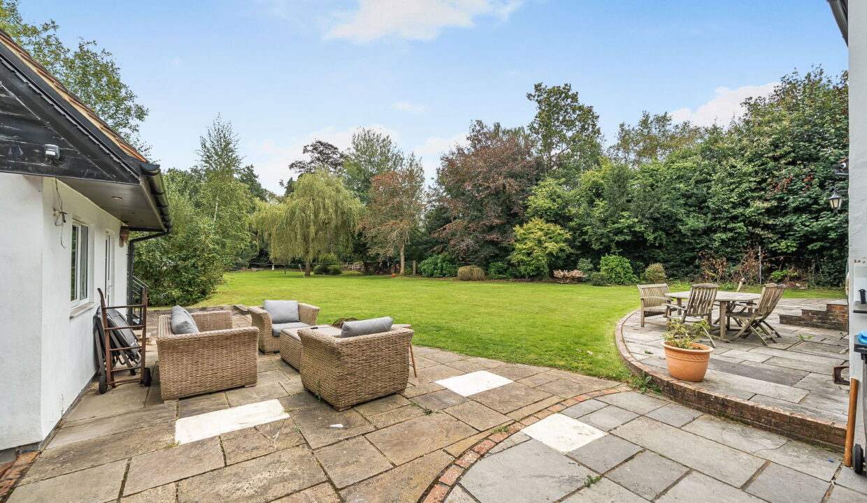 The property boasts a large patio area, perfect for outdoor entertaining and al fresco dining, proceeding onto a large rear garden mainly laid to lawn with plenty of mature trees and hedging for additional privacy. To the front, the driveway provides parking for several vehicles and secured by electric gates, feature brick wall and hedging for privacy.