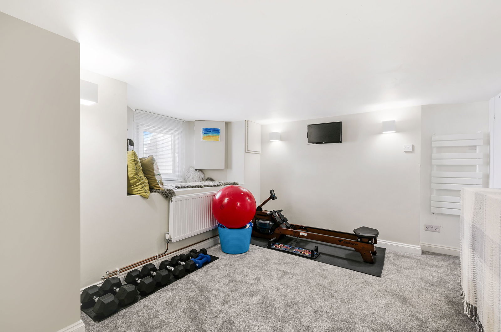 The converted basement provides a superb additional living area, currently used as a home gym. This versatile space could also serve as a cinema room, playroom, fifth bedroom, or dedicated office. A convenient WC and under-stairs storage complete the floor.