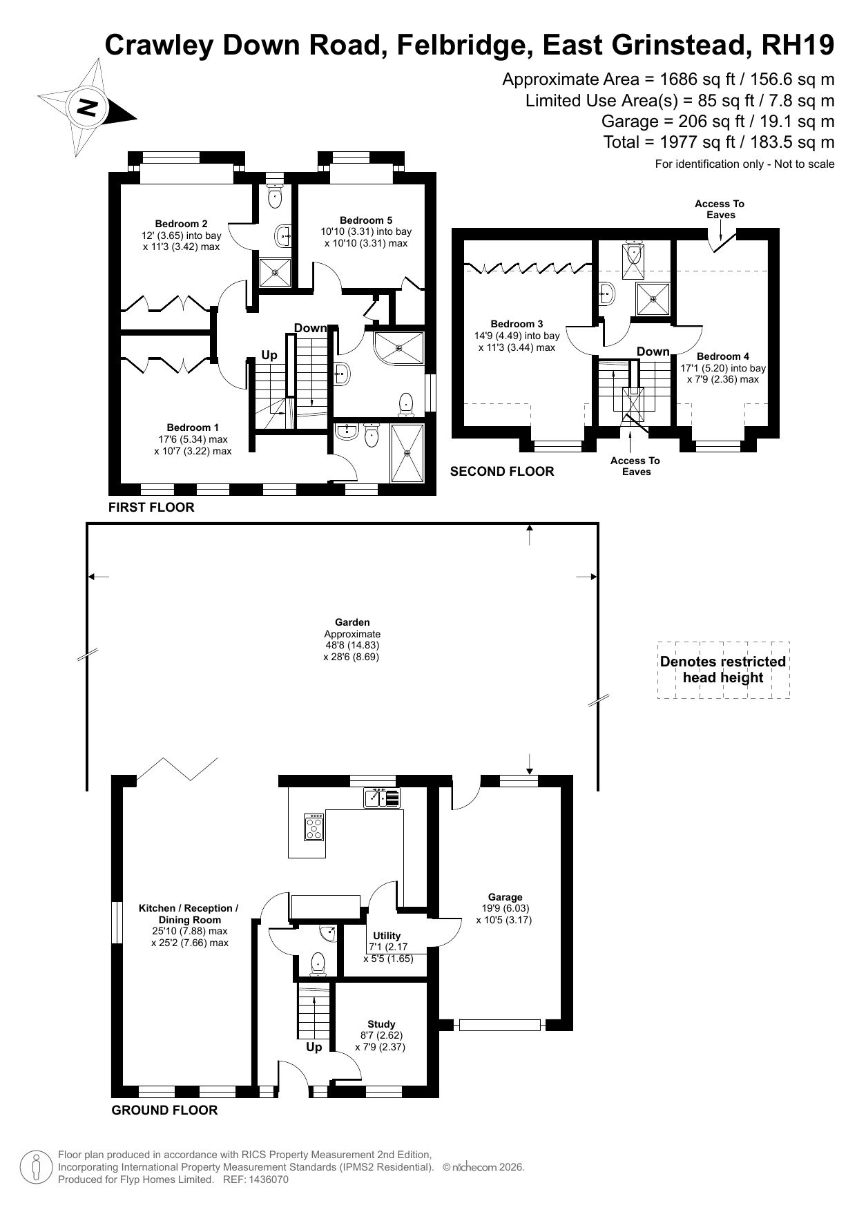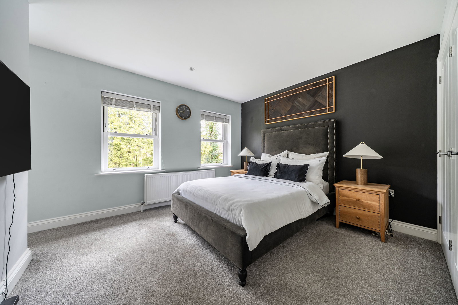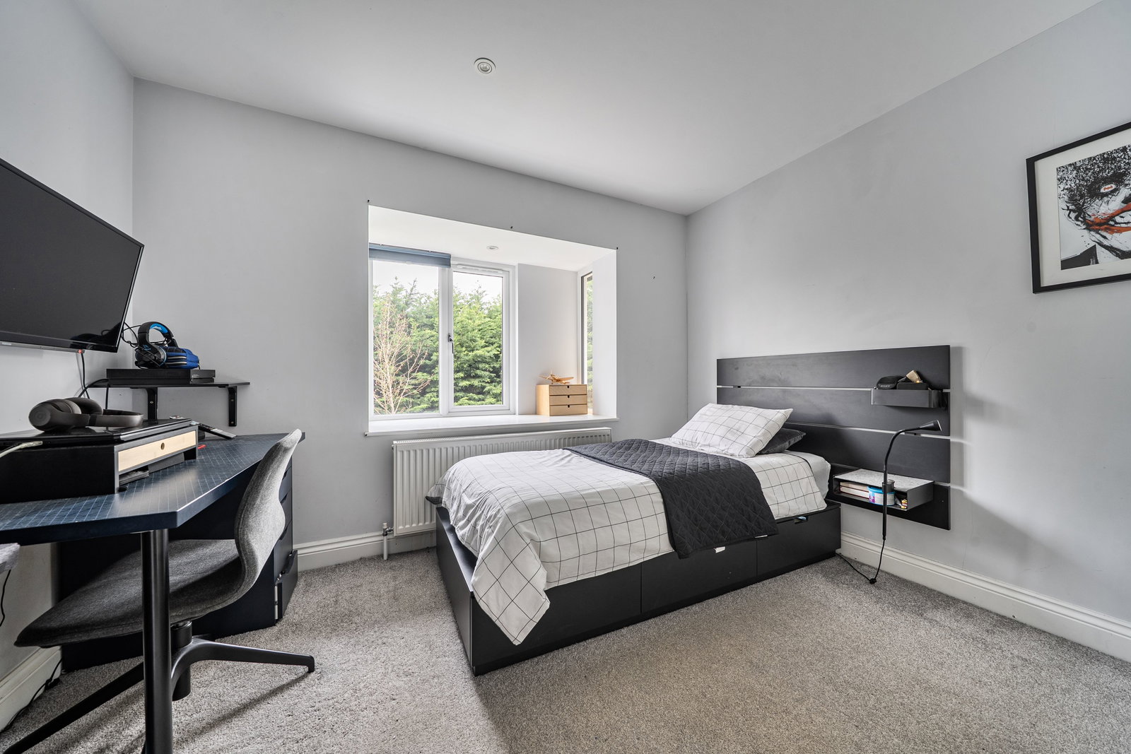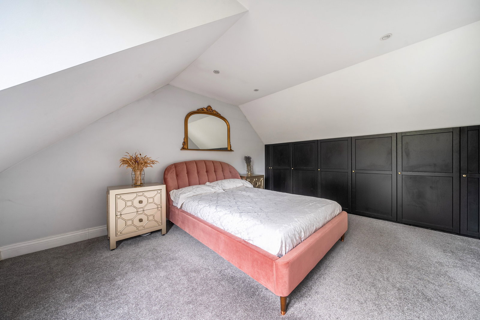 On the first floor, there are three well-proportioned bedrooms, including a spacious principal bedroom, all served by modern bathroom facilities. The second floor adds further flexibility with two additional bedrooms, ideal for guests, older children or further workspace, along with access to useful eaves storage.