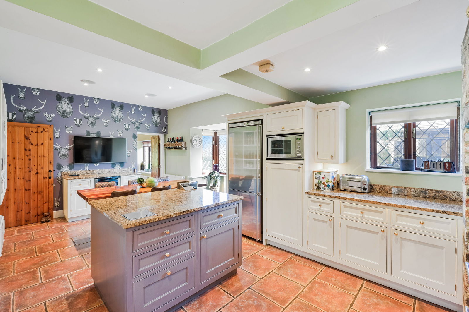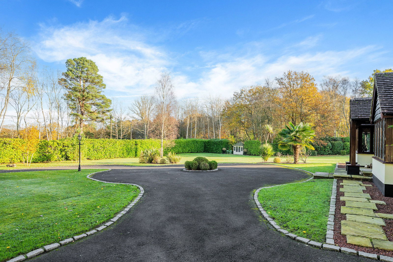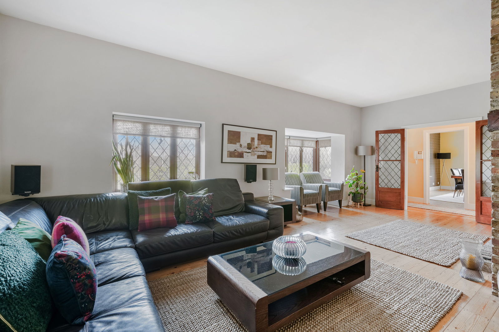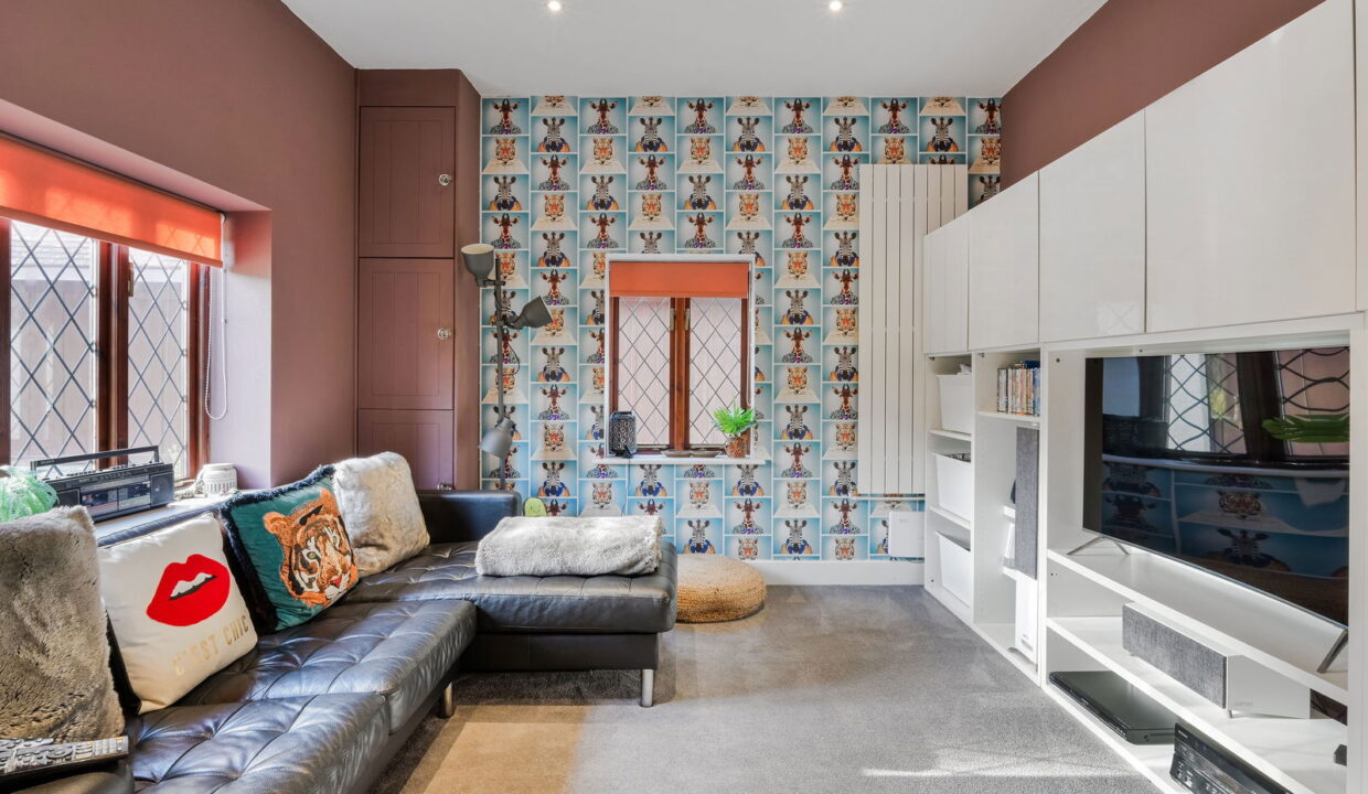 Through the gated entrance privacy and seclusion await, and you are immediately welcomed by a sweeping driveway leading to the front of the home. Stepping inside this home, the 2136sqft offer flexible accommodation throughout with 3 separate reception rooms downstairs.. Currently used as a formal lounge, separate dining area and a family room, all are of fantastic proportion with beautiful bay windows in both front rooms. The kitchen is the hub here with main central island, range style cooker, drinks fridge, and space for a table and chairs too, and has French Doors leading out to a sunny patio and access to the garden room. There is a handy utility off the kitchen and two separate cloakrooms, one which was once a bathroom and could be converted back into one if needed.