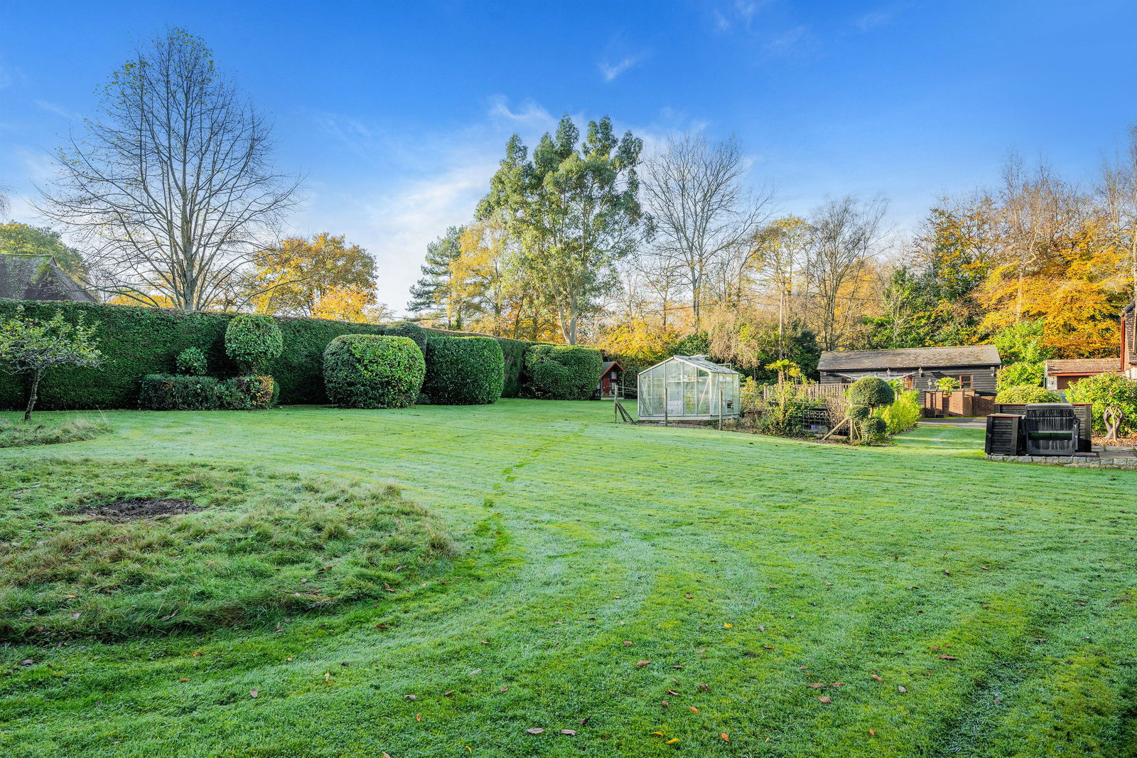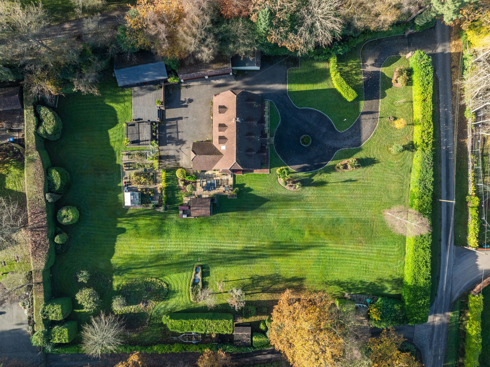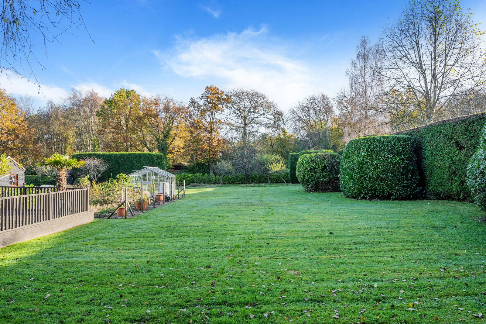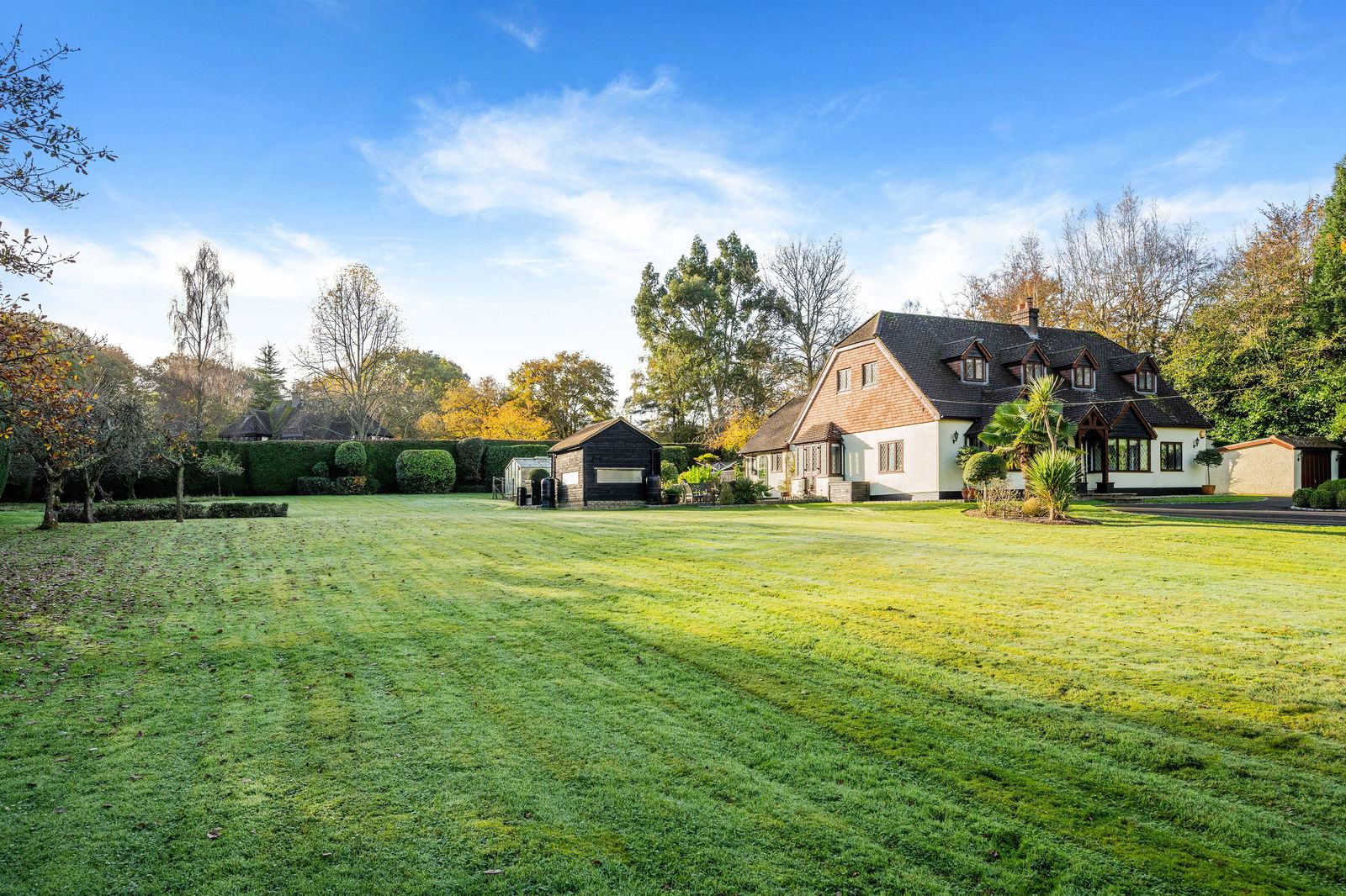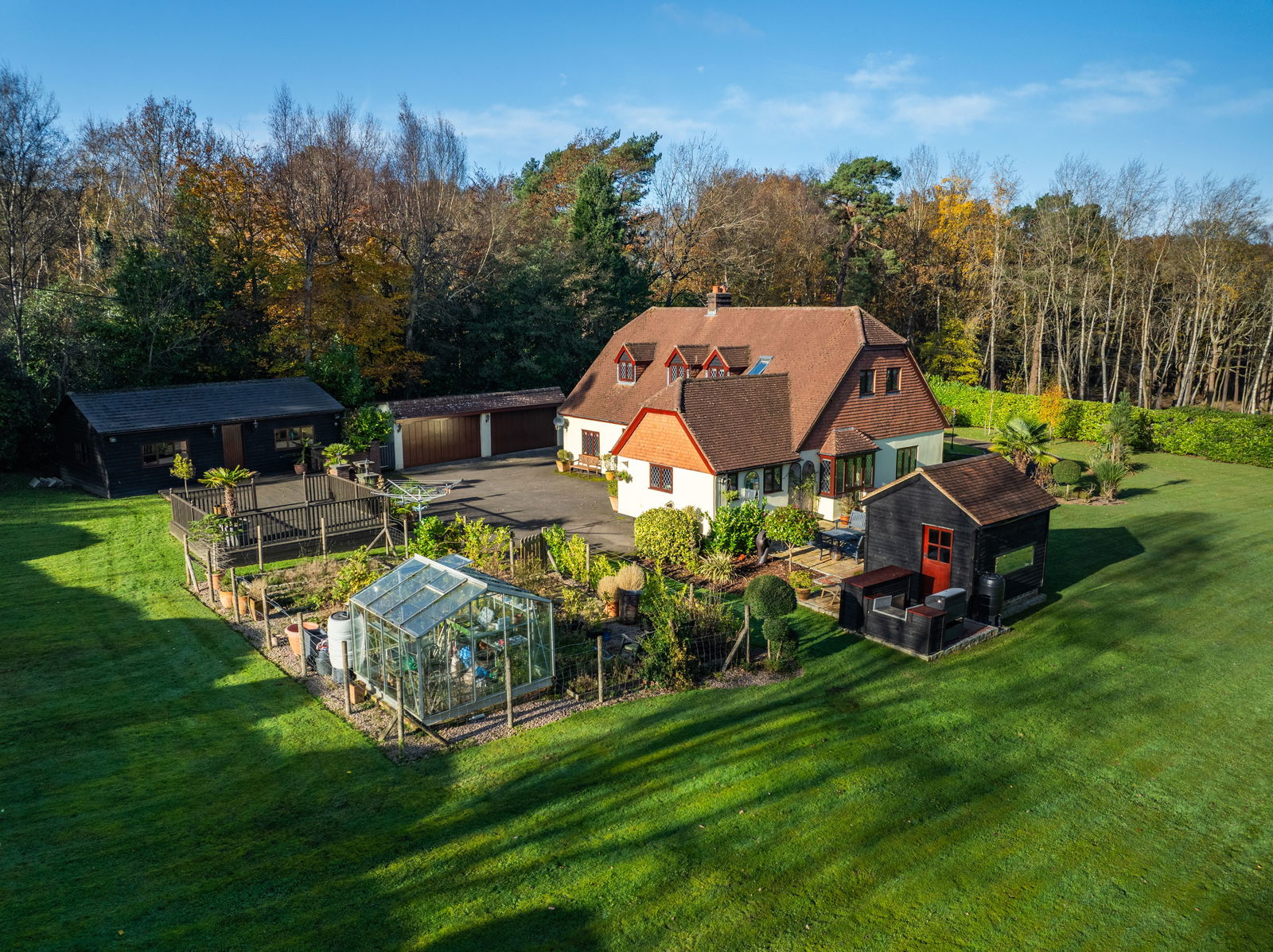The home sits on a stunning 1.08 acre plot with wonderful mature gardens surrounding the home! Most is laid to lawn and various outbuildings. The garden room is a lovely space to spend time relaxing, overlooking the garden. In summer it offers a cool retreat, ion the colder months, a warmer spot to take in your surroundings! There are 3 garages in total, 2 doubles and one single. The games room, currently houses a full size snooker table, bar and games corner. There is also a vegetable plot green house and separate decking area to enjoy with family and friends.