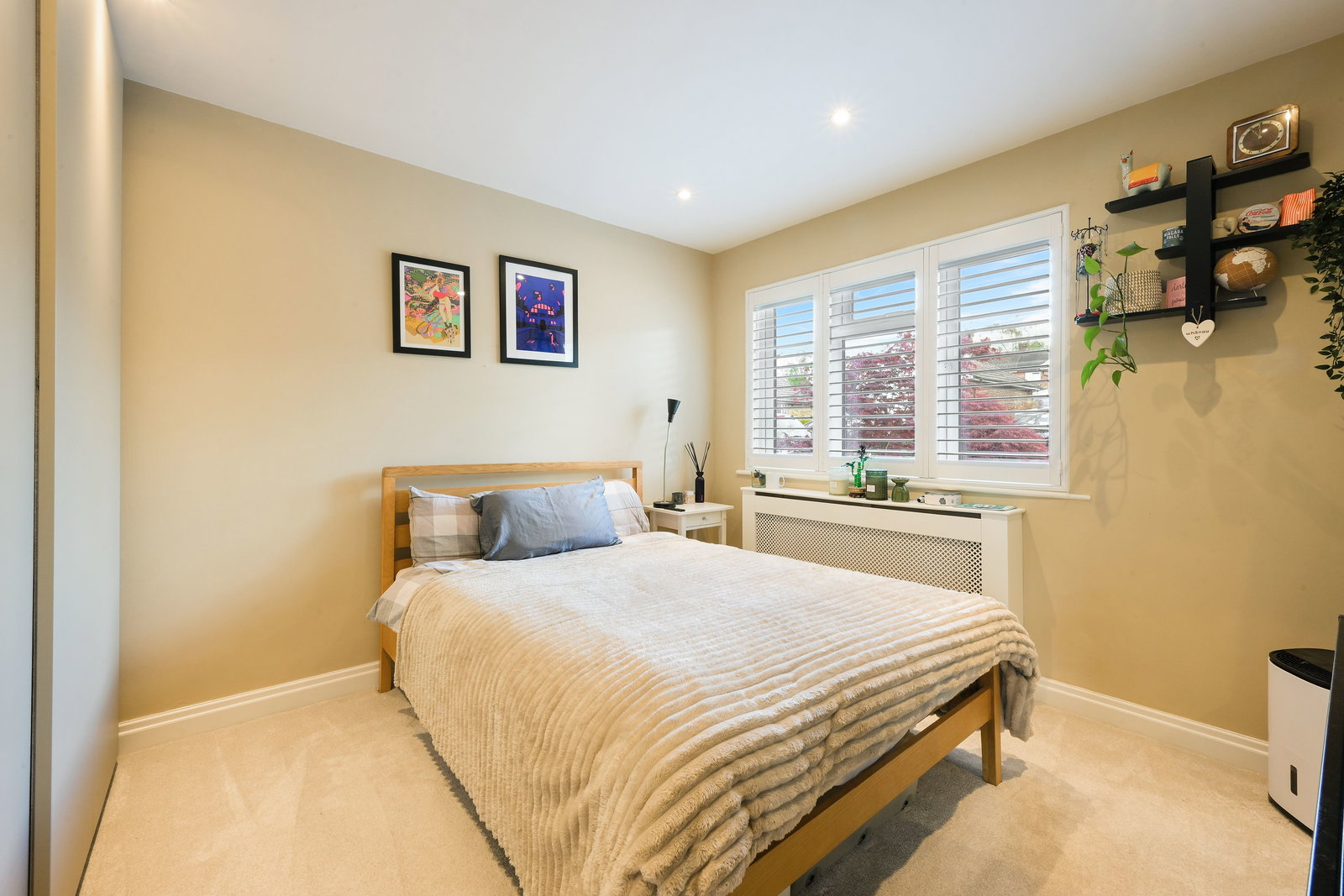 There are two well-proportioned bedrooms, both benefiting from the home’s overall refurbishment with beautiful shutters with blackout linings, creating a cohesive and stylish finish. Outside, the property enjoys a private rear garden, perfect for outdoor dining and relaxation. The loft is boarded with power, and a detached garage and a separate studio/home office provide excellent flexibility for storage, hobbies or remote working.