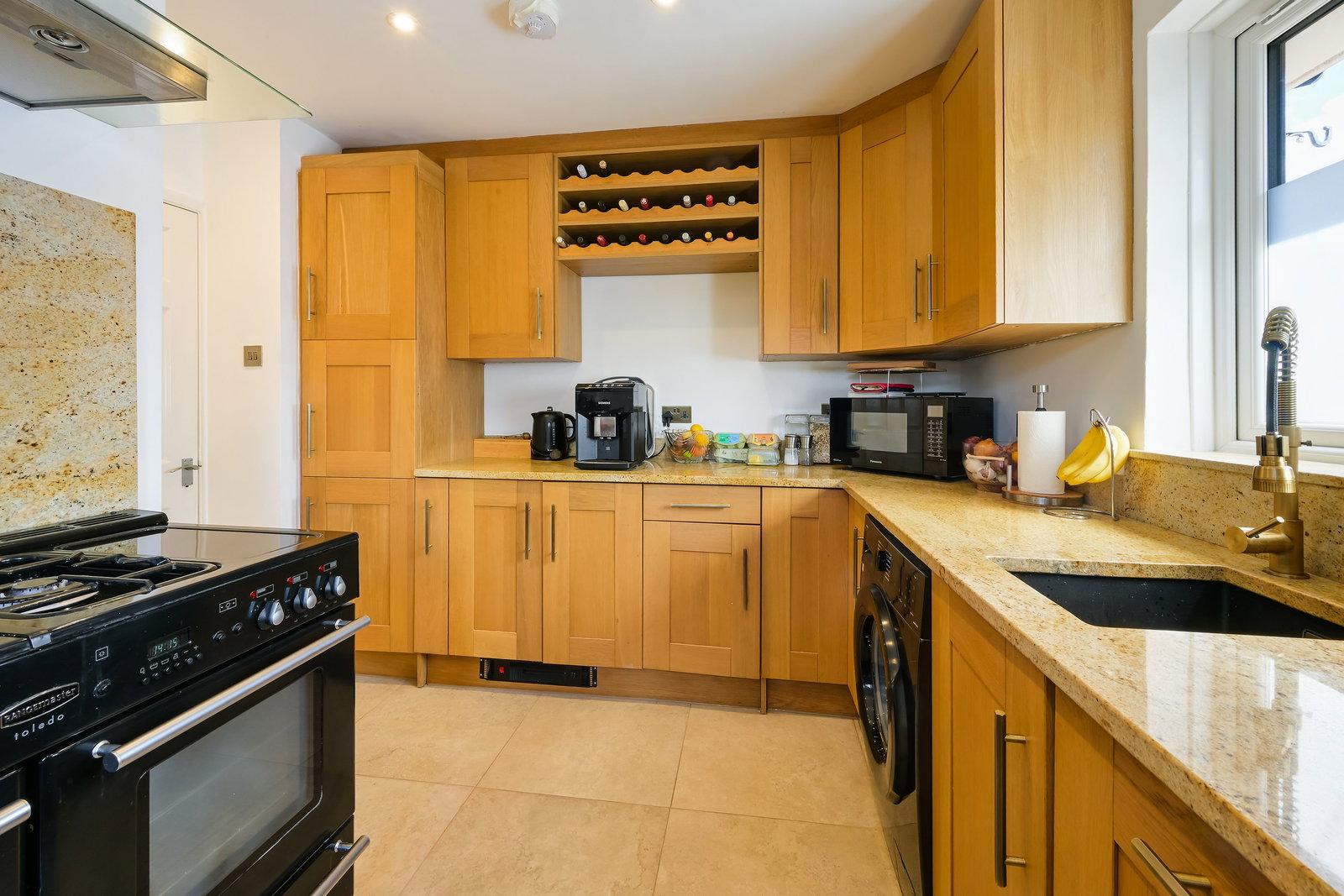 The property opens into a welcoming entrance hall leading through to a bright and spacious sitting room, which flows seamlessly into the added conservatory to create an impressive open-plan living and dining space. This light-filled area is perfect for both relaxing and entertaining, with views over and access to the rear garden. The recently fitted kitchen is a real highlight, finished to a high standard with solid oak units, quality granite worktops and splashbacks, and integrated appliances. A modern, newly installed bathroom serves the home, finished with sleek fittings and a fresh, neutral design with newly fitted Amitco flooring throughout the main living areas