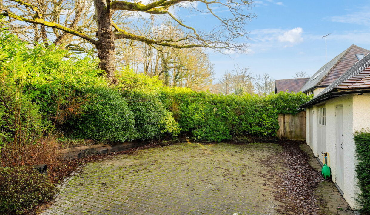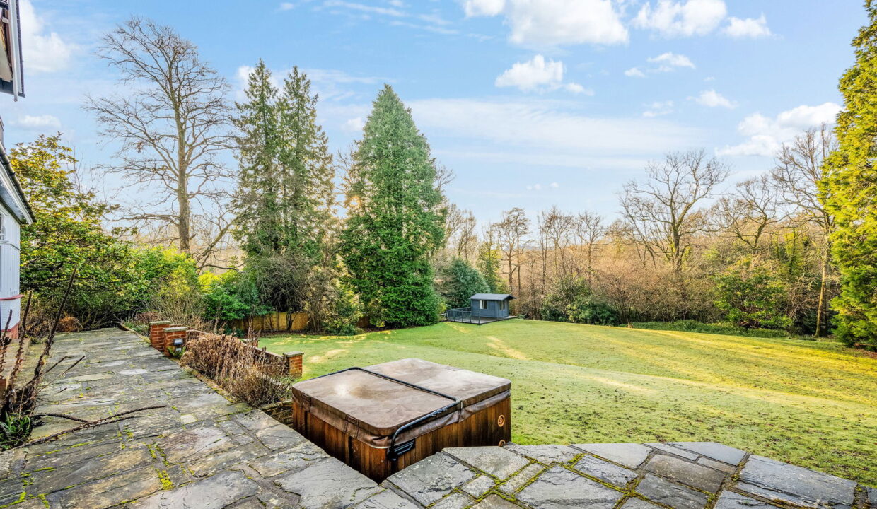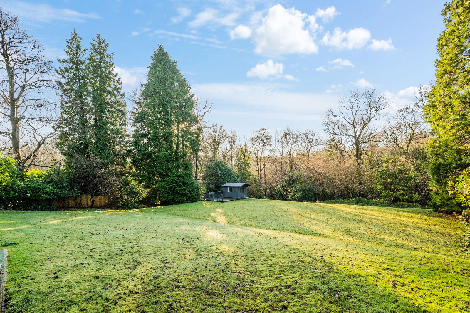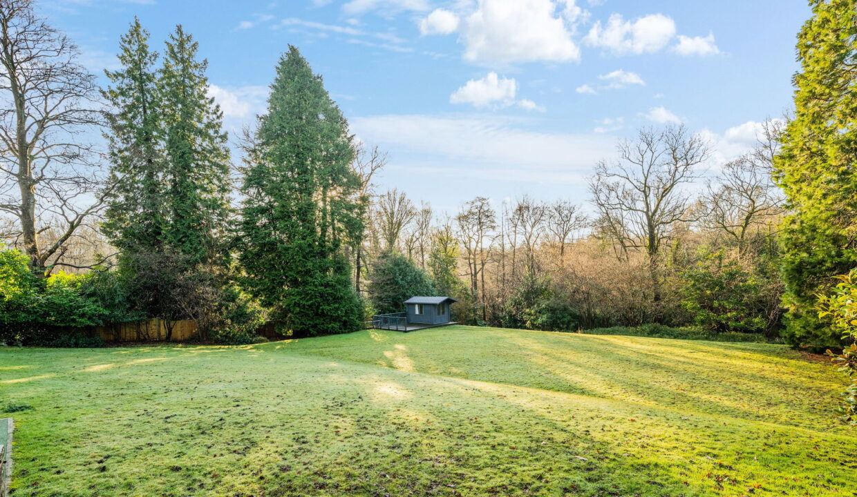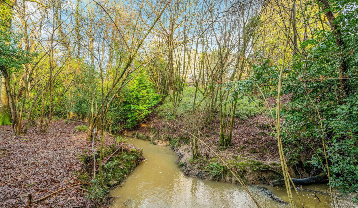 The gated driveway provides space for multiple vehicles and leads to the garage/workshop. The secluded gardens, with southerly aspect, nestle on the fringe of Dormans Park. There is a stone terrace adjacent to the rear of the house, ideal for entertaining. Further outbuildings include a large, modern summerhouse. The garden slopes gently downward, leading the way towards a serene stream which meanders through the landscape, and forms the boundary to the property.