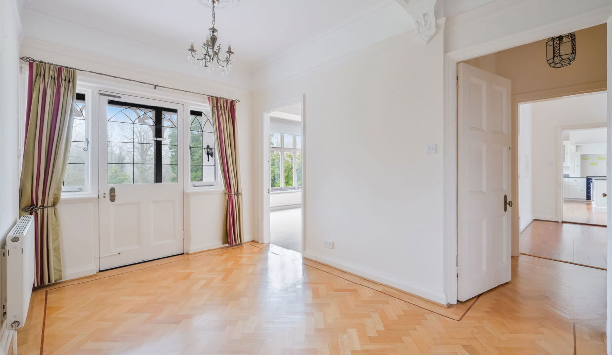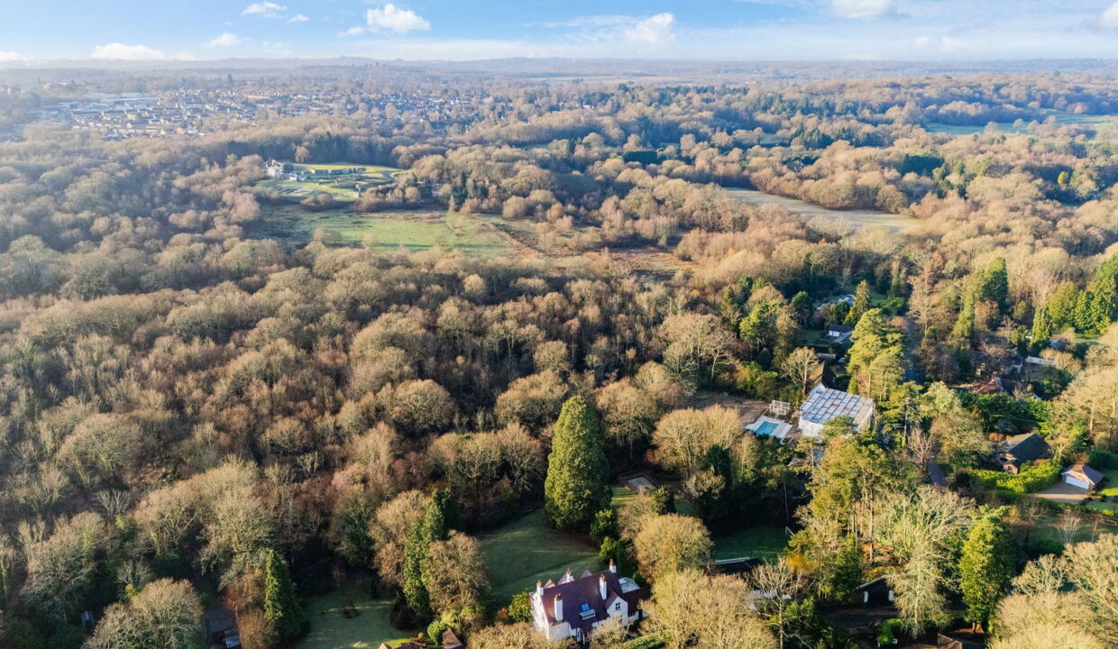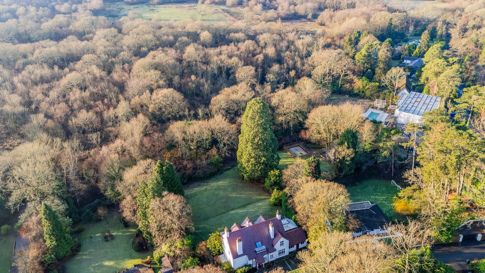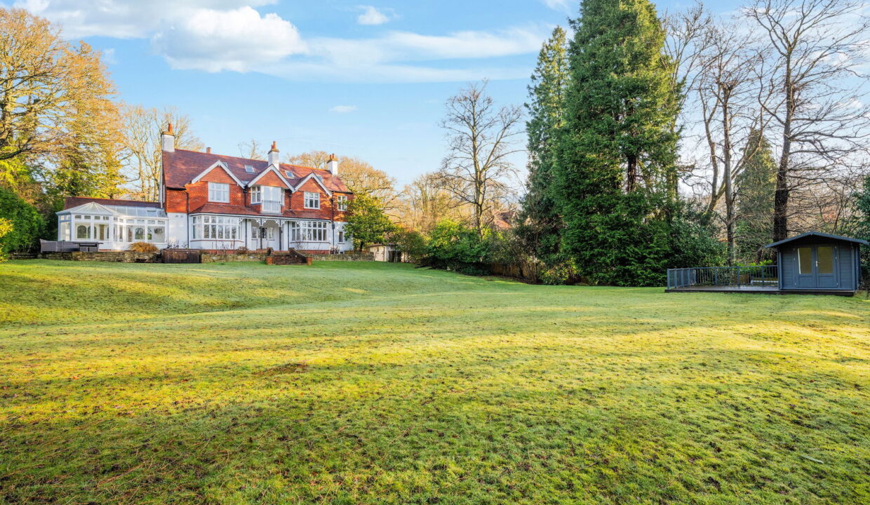 The gated driveway provides space for multiple vehicles and leads to the garage/workshop. The secluded gardens, with southerly aspect, nestle on the fringe of Dormans Park. There is a stone terrace adjacent to the rear of the house, ideal for entertaining. Further outbuildings include a large, modern summerhouse. The garden slopes gently downward, leading the way towards a serene stream which meanders through the landscape, and forms the boundary to the property.