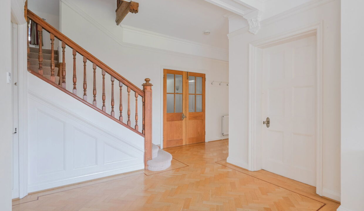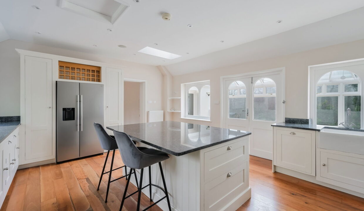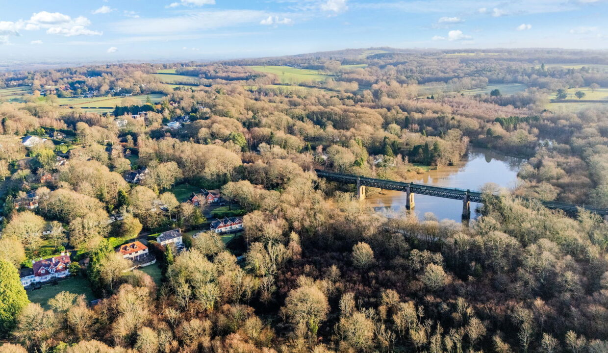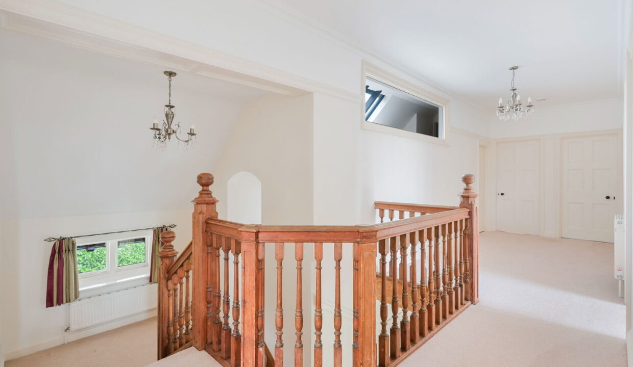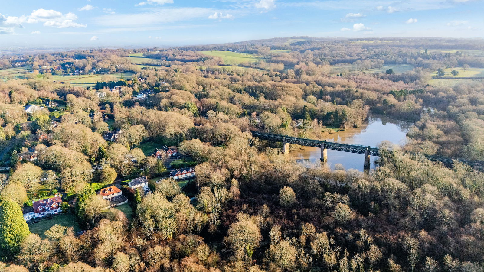 The gated driveway provides space for multiple vehicles and leads to the garage/workshop. The secluded gardens, with southerly aspect, nestle on the fringe of Dormans Park. There is a stone terrace adjacent to the rear of the house, ideal for entertaining. Further outbuildings include a large, modern summerhouse. The garden slopes gently downward, leading the way towards a serene stream which meanders through the landscape, and forms the boundary to the property.