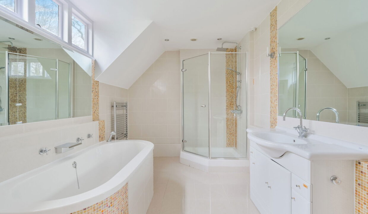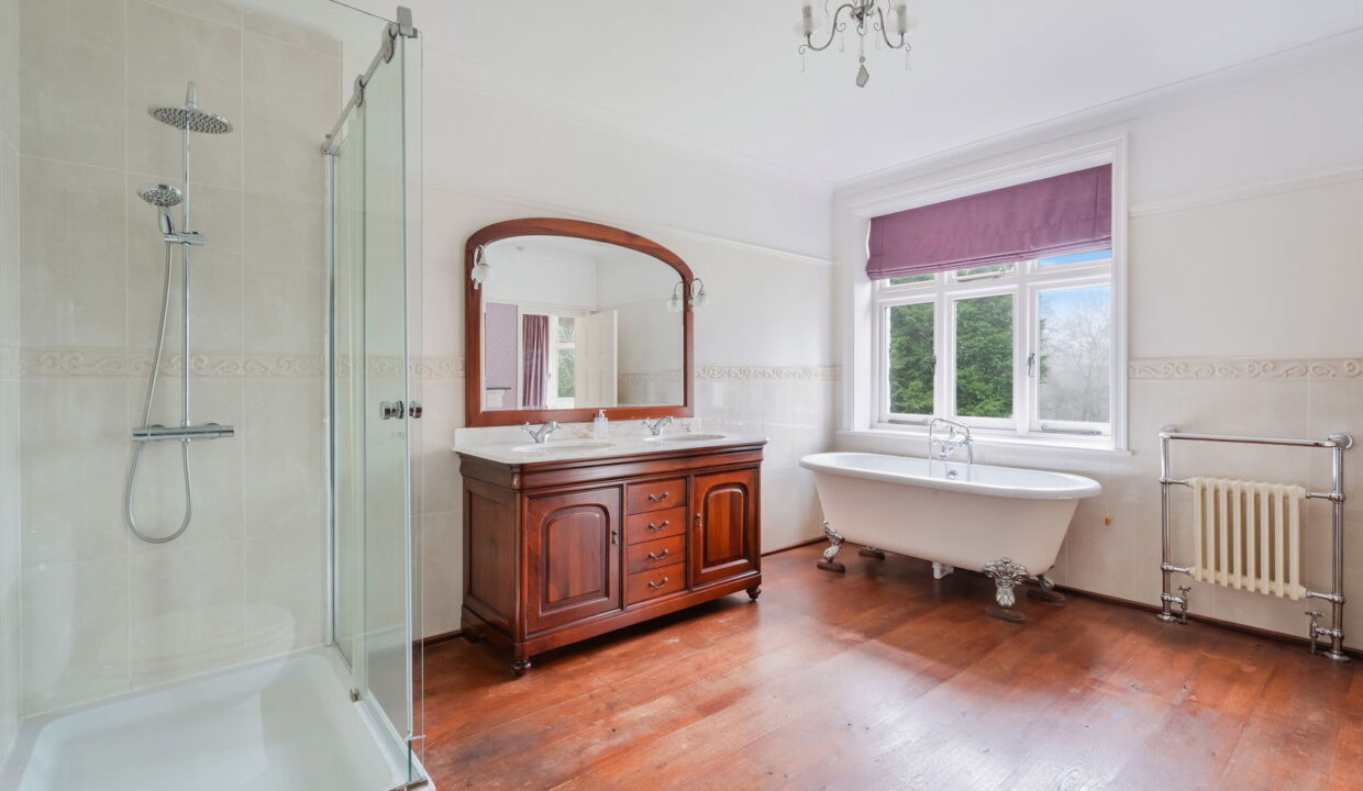 -En-suite bathroom with low-level WC, his and her wash hand basins, roll top bath with mixer taps, double shower suite and a separate entrance from the landing