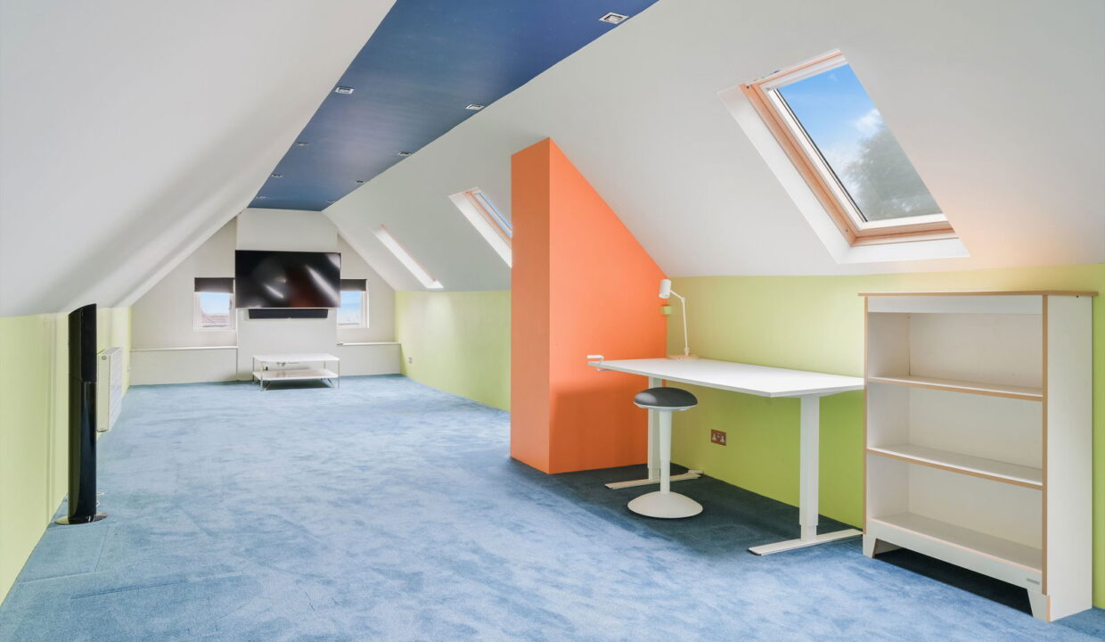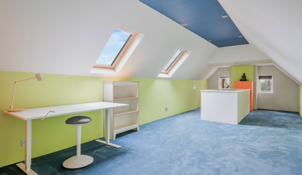 Impressive loft room which is 52 foot long, a versatile space currently used as home office, potential for further bedrooms/annexe.