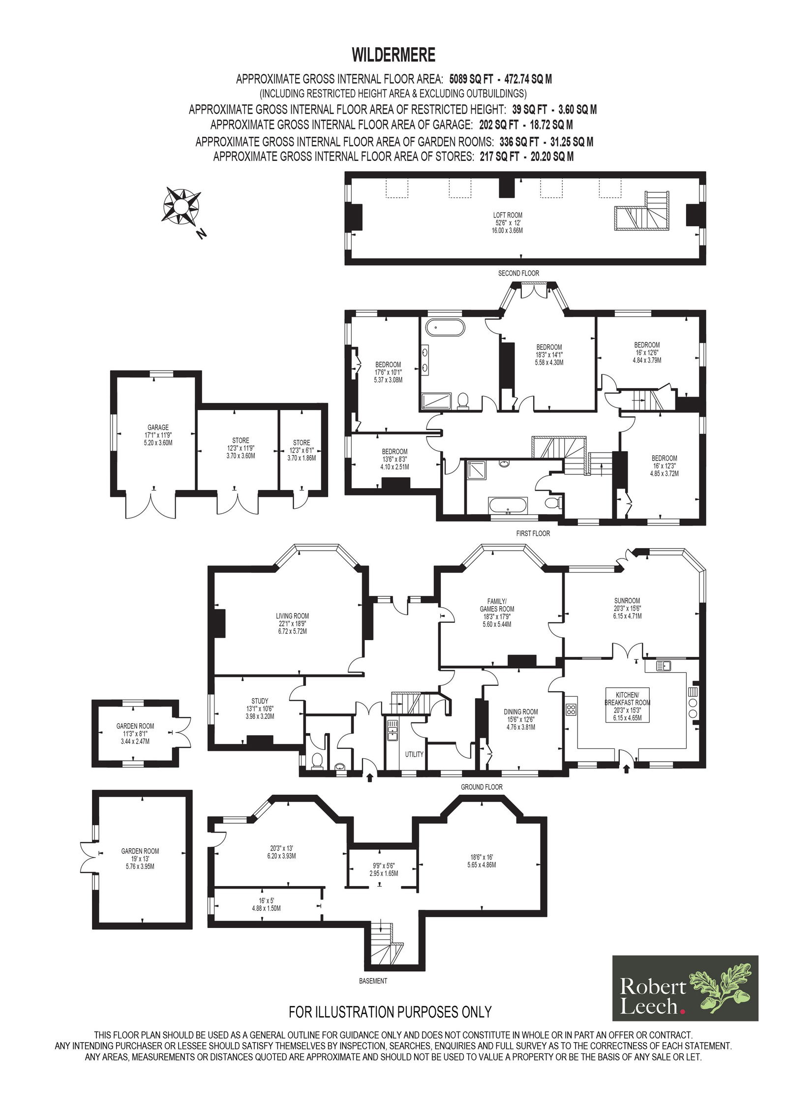 This elegant Victorian home has been upgraded in a style which respects the architecture of the original home. Period features, typical of the era, include fireplaces (one with wood burning stove), bay windows and high ceilings. These features are complimented by modern finishes, including ‘classic’ style kitchen with gas fired AGA, and modern bathroom suites. The extensive accommodation extends to about 5,000 sq.ft to include 5 bedrooms on the first floor, with additional space on the top floor, recently utilised as a large home office area, extending to 52 ft. Stepping outside, there is a gated ‘carriage’ driveway leading to the garage and outbuildings. The grounds are a particular feature, with further outbuildings, and expansive lawns gently descending towards a stream.