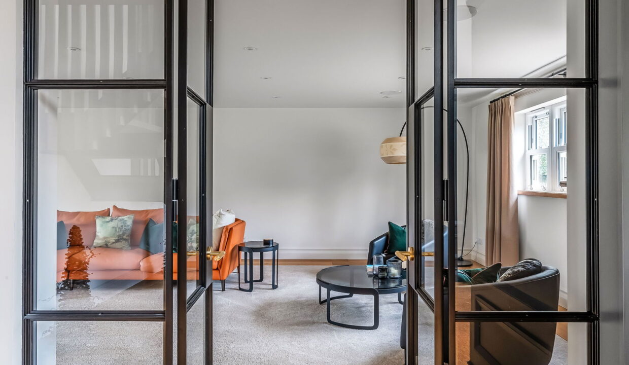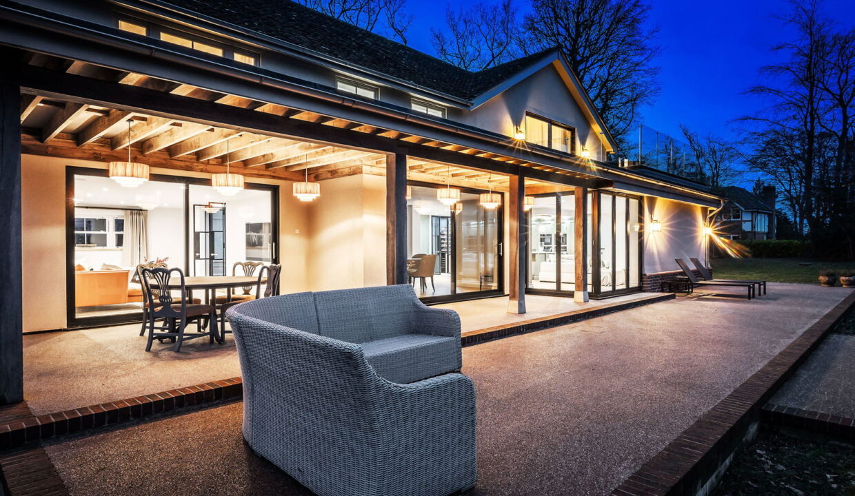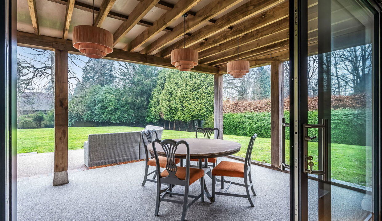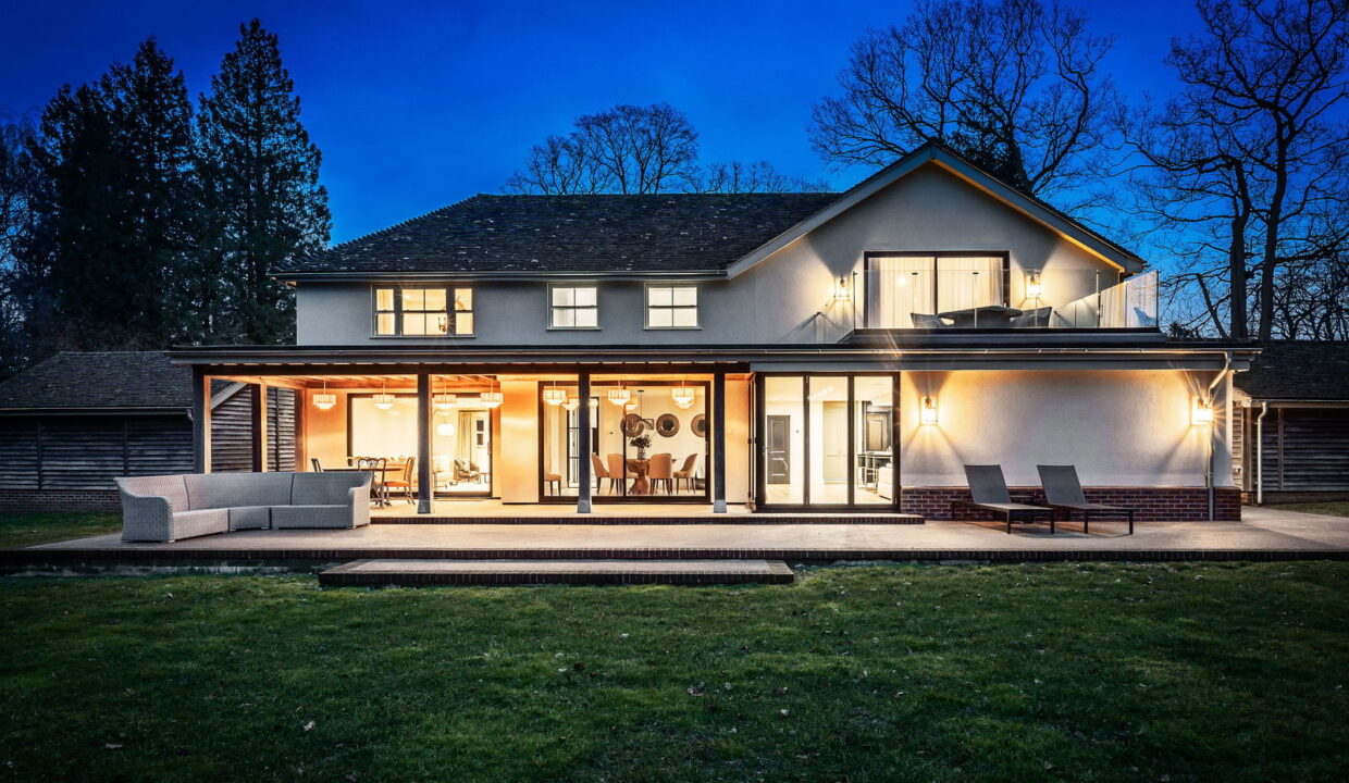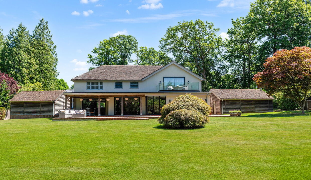 This distinctive detached country residence has been the subject of comprehensive extension and rebuilding. Completed only in 2023, the house is designed for opulent living. Whilst there is an ‘open’ feel, bespoke Bomen doors with complimentary Buster & Punch brass furniture stylishly divide the ground floor rooms into specific living areas. The kitchen/family room is firmly at the heart of the house. With bespoke cabinetry, the thoughtful design caters for the demands of modern living, retaining functionality and style. On the first floor, the principle bedroom is a further feature with vaulted ceiling, twin dressing rooms, well appointed en-suite bathroom, and doors to terrace/balcony which enjoys views over the rear garden. Stepping outside, the house is approached by automatic gates opening to an impressive driveway which features a mature olive tree. There is a detached triple garage block and an oak framed barn style double carport provides further under cover parking.