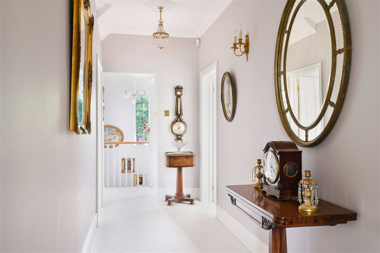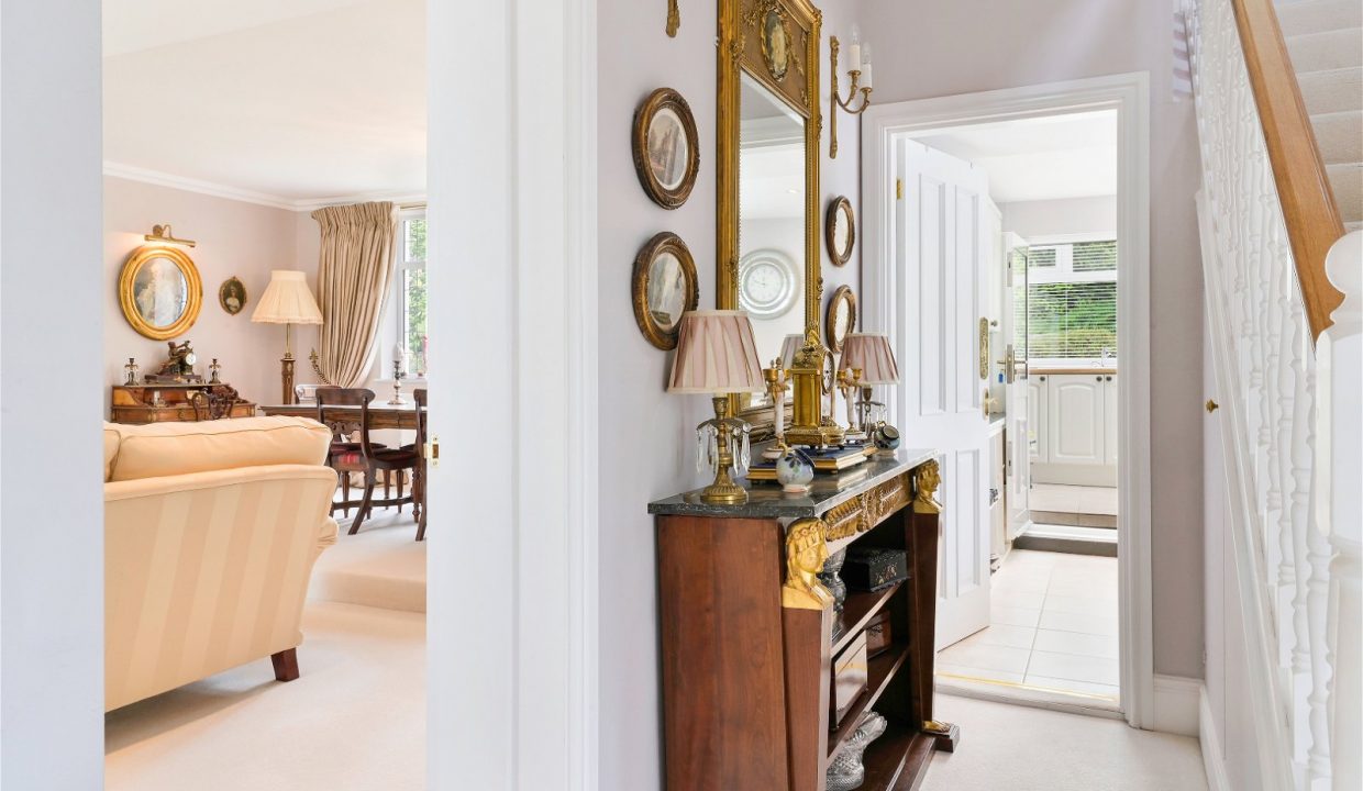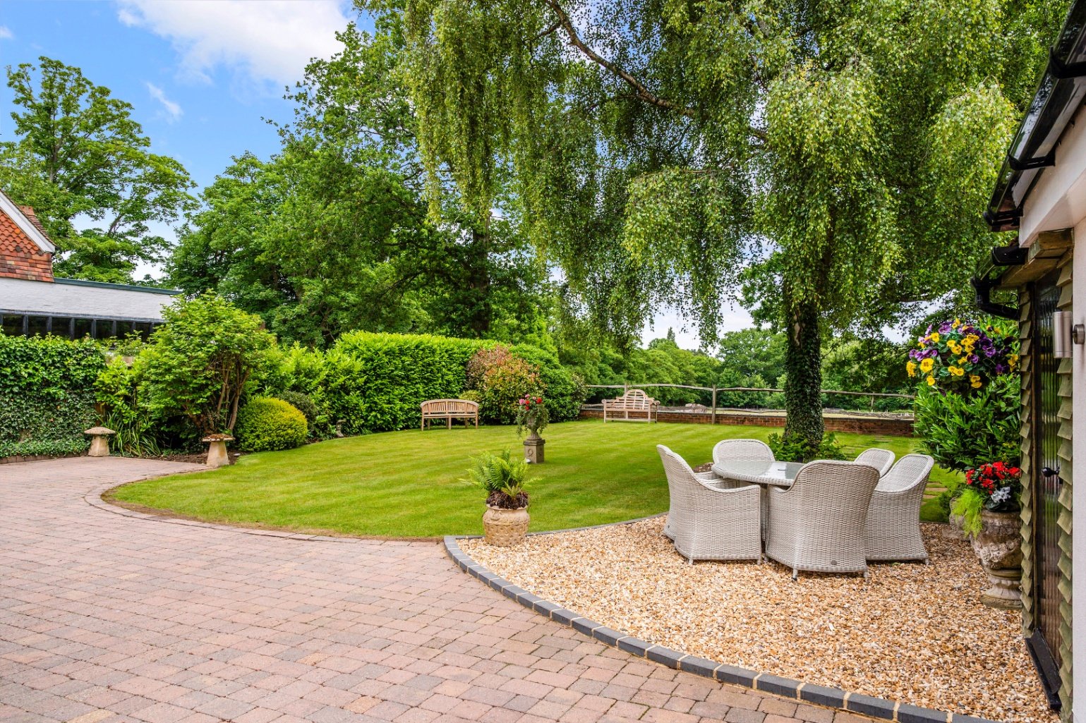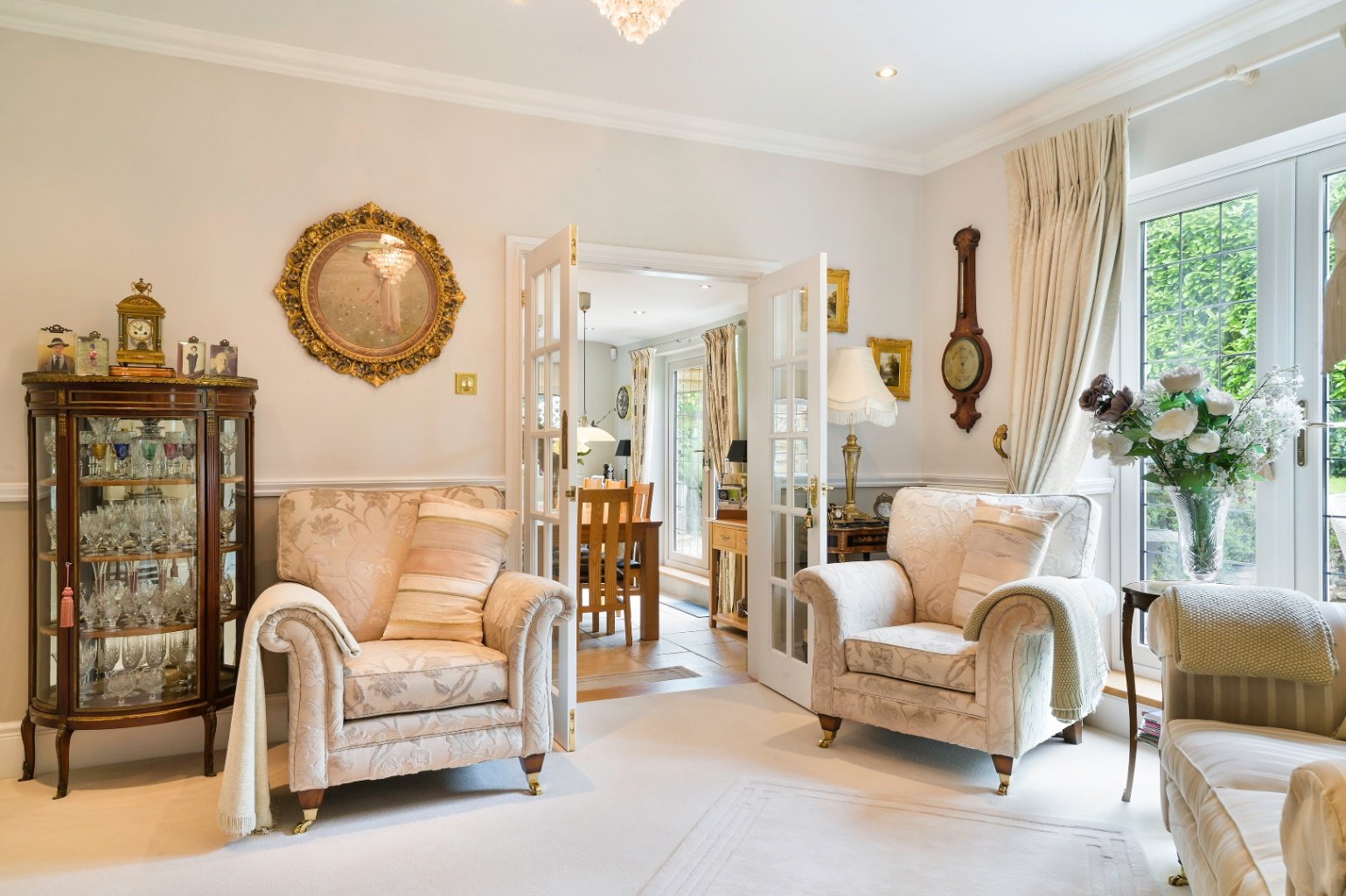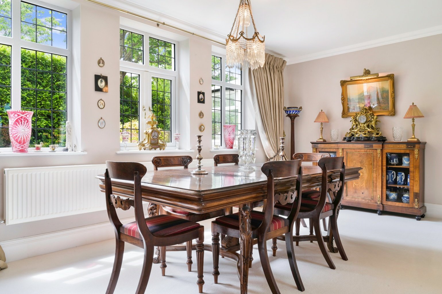 The property occupies a commanding, elevated position at the end of a ‘no through’ road in Dormans Park. The origins of the park date back to the 1800s. It originally comprised of over 200 acres of farmland and woodland. Following the arrival of the railway, with London just 28 miles away, it became a peaceful environment in which to live. Today, it offers an interesting variety of houses, both old and new, in tranquil surroundings. Dormansland village is just over 1 mile away with Church, post office and village shop, whilst Lingfield is 2.5 miles, offering local shopping facilities, and the renowned Racecourse. For more comprehensive shops, including Waitrose, the old market town of East Grinstead is about 2.5 miles away. There is an excellent choice of independent schools in the area, including Lingfield College, Brambletye, Ardingly College, Worth and Cumnor House. For commuters, Dormans Station can be accessed via a footpath. For the international traveller, Gatwick airport is about 9 miles distant.
