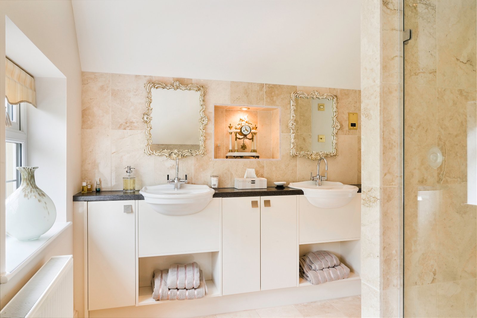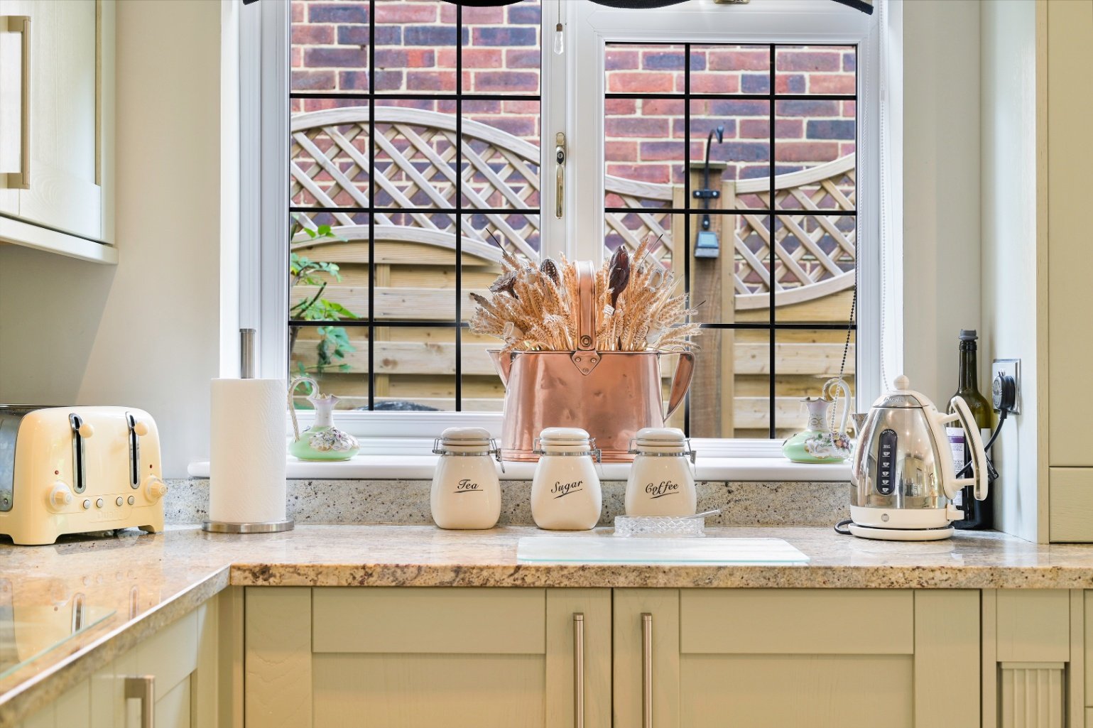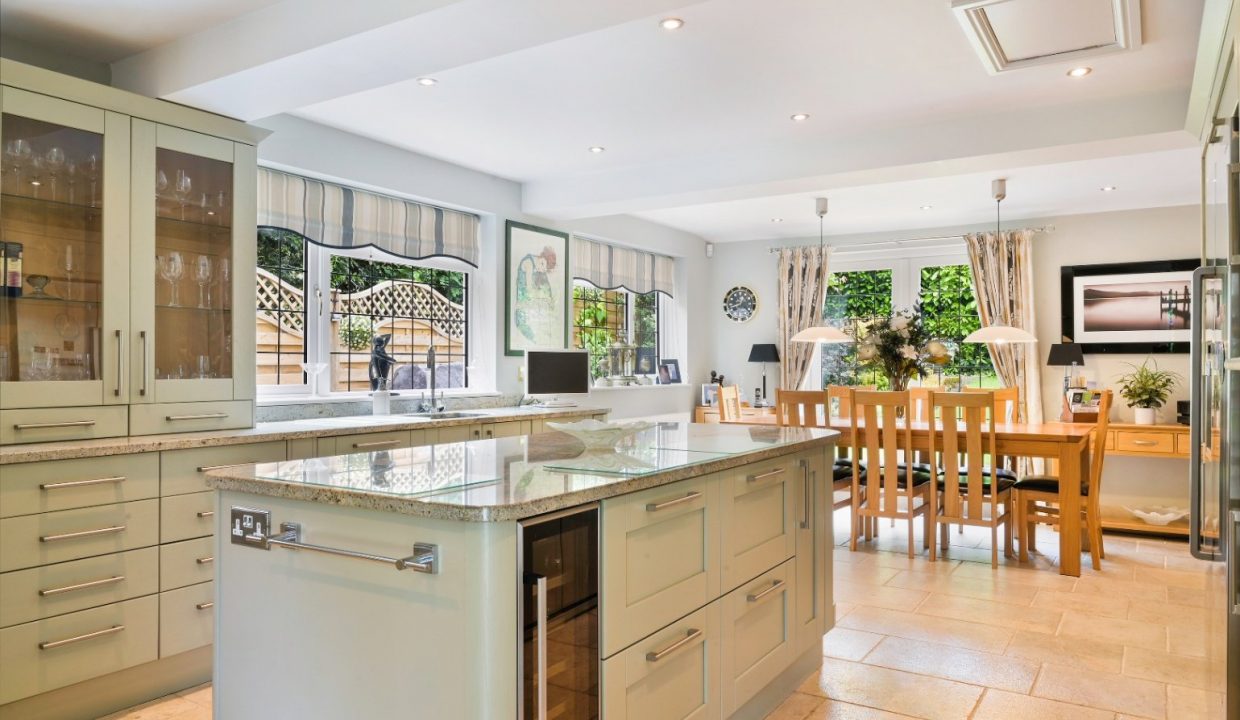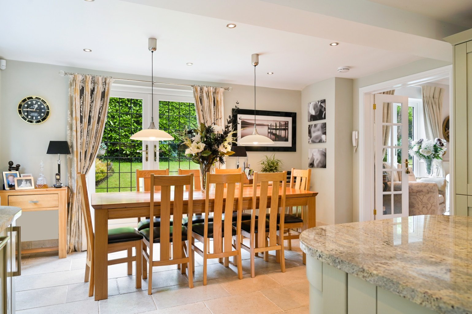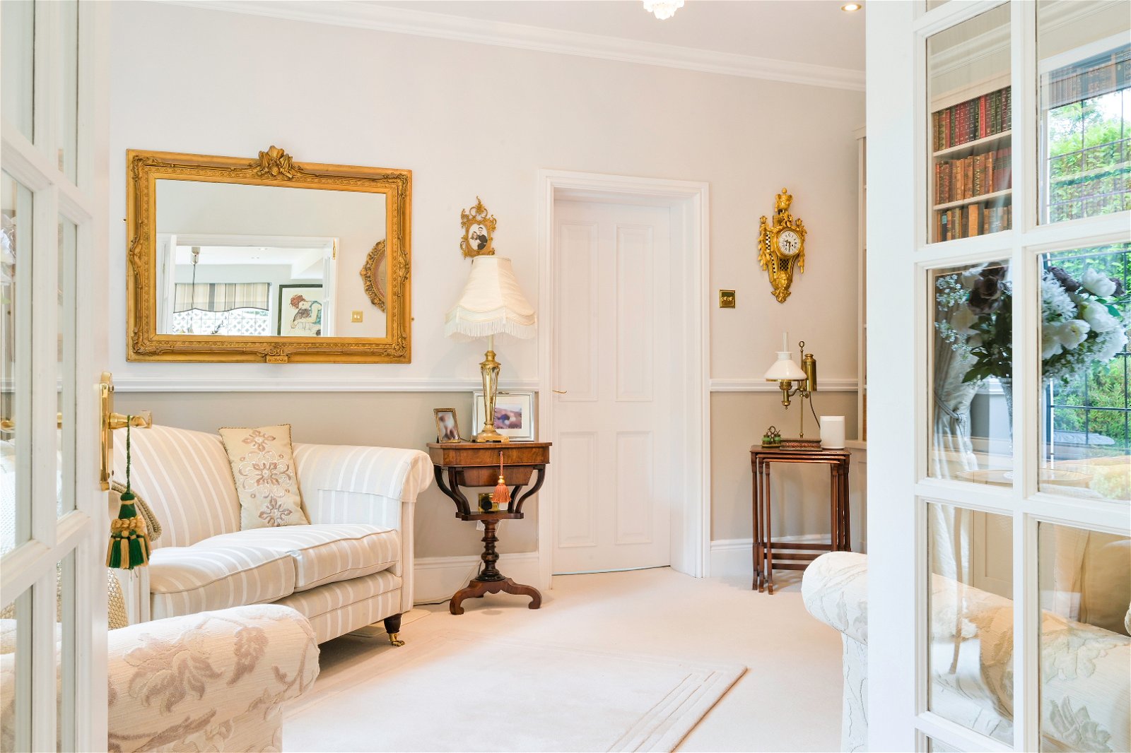 The property occupies a commanding, elevated position at the end of a ‘no through’ road in Dormans Park. The origins of the park date back to the 1800s. It originally comprised of over 200 acres of farmland and woodland. Following the arrival of the railway, with London just 28 miles away, it became a peaceful environment in which to live. Today, it offers an interesting variety of houses, both old and new, in tranquil surroundings. Dormansland village is just over 1 mile away with Church, post office and village shop, whilst Lingfield is 2.5 miles, offering local shopping facilities, and the renowned Racecourse. For more comprehensive shops, including Waitrose, the old market town of East Grinstead is about 2.5 miles away. There is an excellent choice of independent schools in the area, including Lingfield College, Brambletye, Ardingly College, Worth and Cumnor House. For commuters, Dormans Station can be accessed via a footpath. For the international traveller, Gatwick airport is about 9 miles distant.