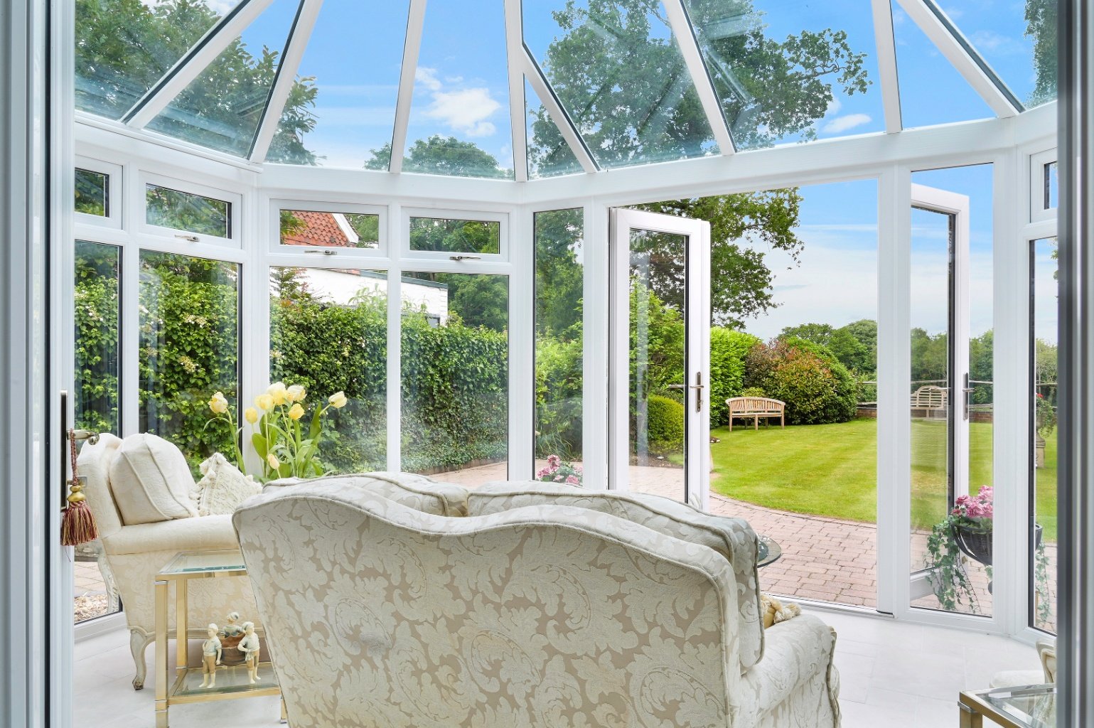• Established area of garden to the front, paved terrace, lawn, inset herbaceous bed and large expanse of lawn to the rear of the house.