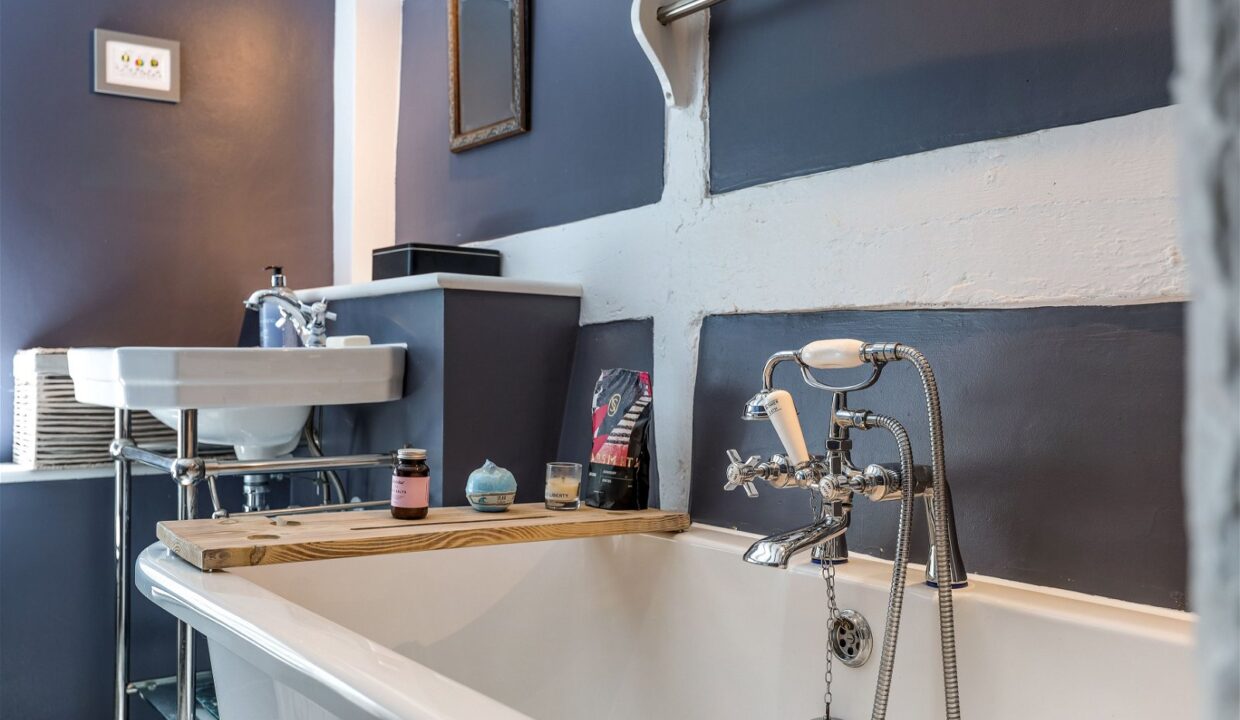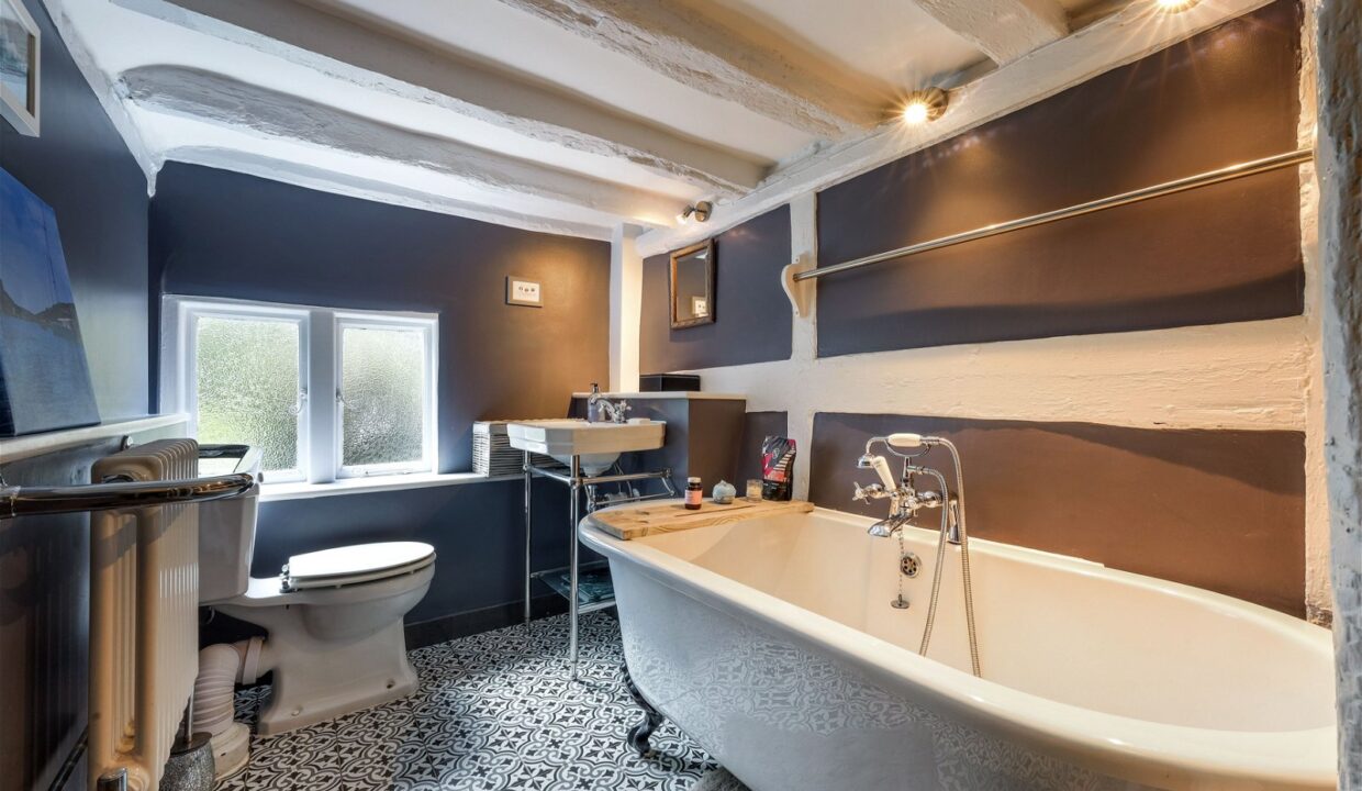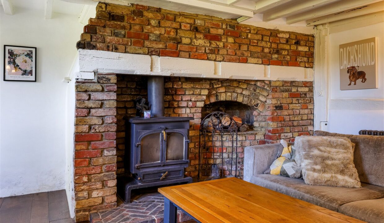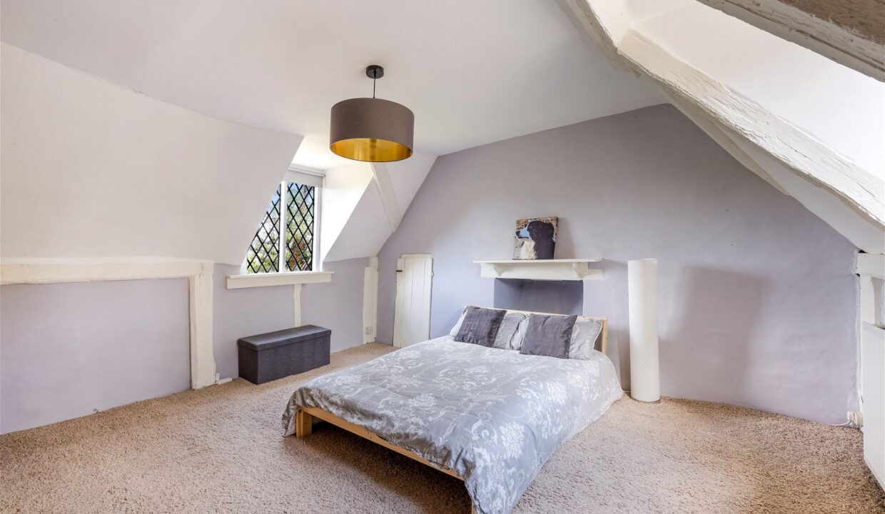 The double aspect Reception/Dining Room with exposed beams, wooden floorboards and stunning inglenook fireplace with wood burner. An attractive Shaker-style kitchen incorporates a butler sink, integrated dishwasher, range cooker, stone tiled floor and pantry. The adjoining utility room has space for a washing machine and fridge/freezer. The extended downstairs bedroom is bright and airy with light coloured beams, wooden floor, vaulted ceiling, bespoke oak bookcase and triple aspect double doors to the garden. The ensuite wet room features underfloor heating, shower, wash basin and w.c. For additional flexibility, the study could also be used as an extra bedroom. A recently refitted family bathroom with freestanding Victorian style bath and underfloor heating completes the downstairs accommodation.