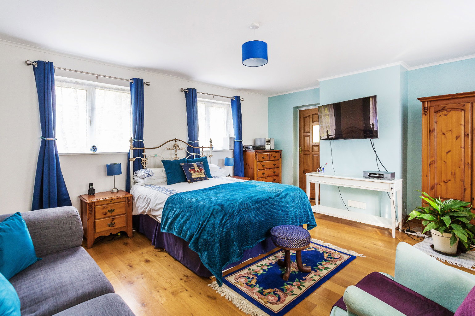 On the first floor, there are two further double bedrooms. The first is a large, dual-aspect room enjoying delightful garden views, complete with an en suite and useful eaves storage. The second bedroom is also well-proportioned and offers ample eaves storage.