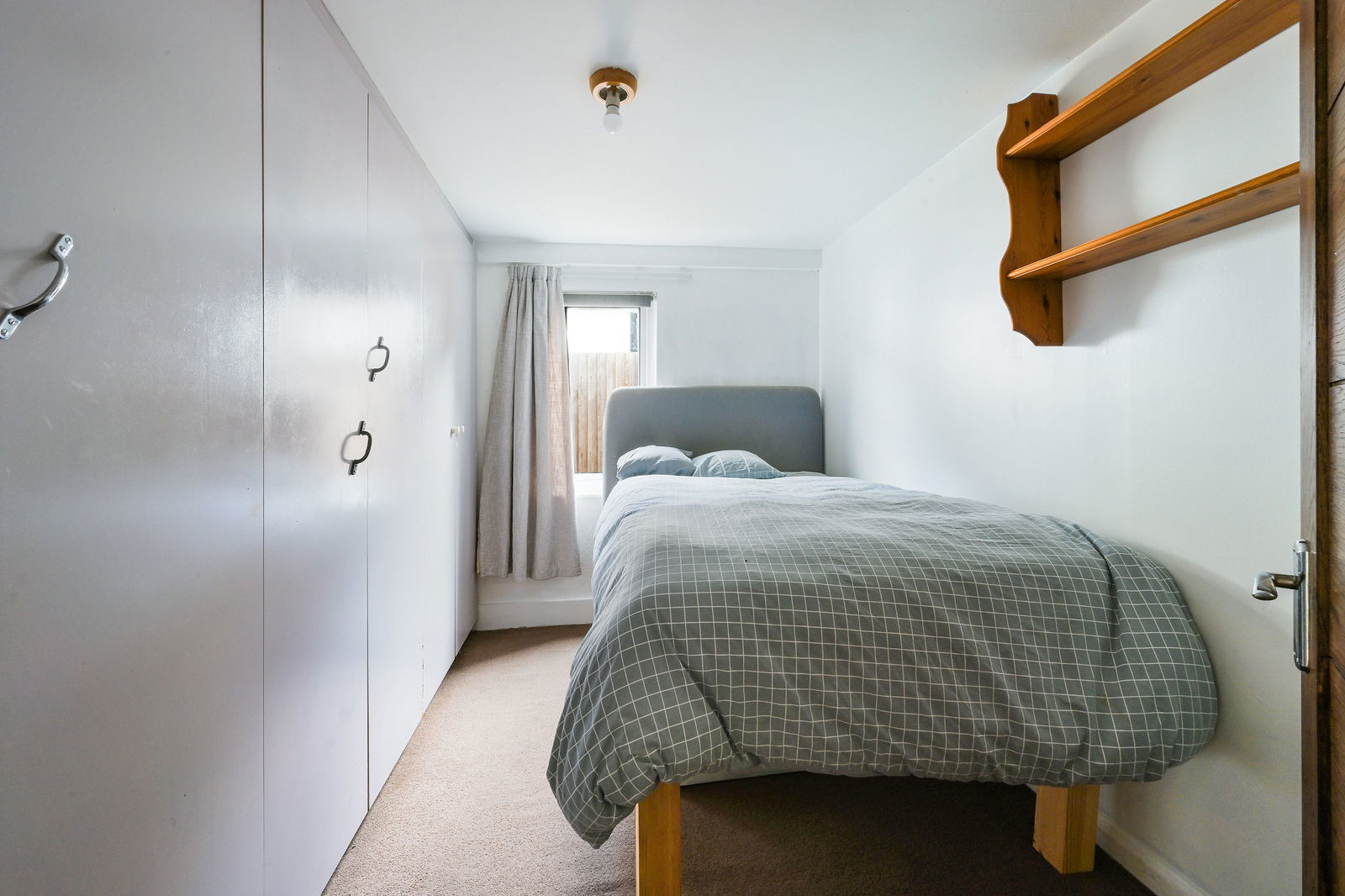 The principal suite really makes an impression, with newly fitted carpets and expansive triple-aspect windows offering serene garden views. A large mezzanine adds valuable storage or relaxation space, while the adjoining room, currently used as a home office, could function as a nursery, dressing room, or additional bedroom. A stylish en-suite bathroom with a shower-over-bath setup and full-height window completes this elegant retreat.
