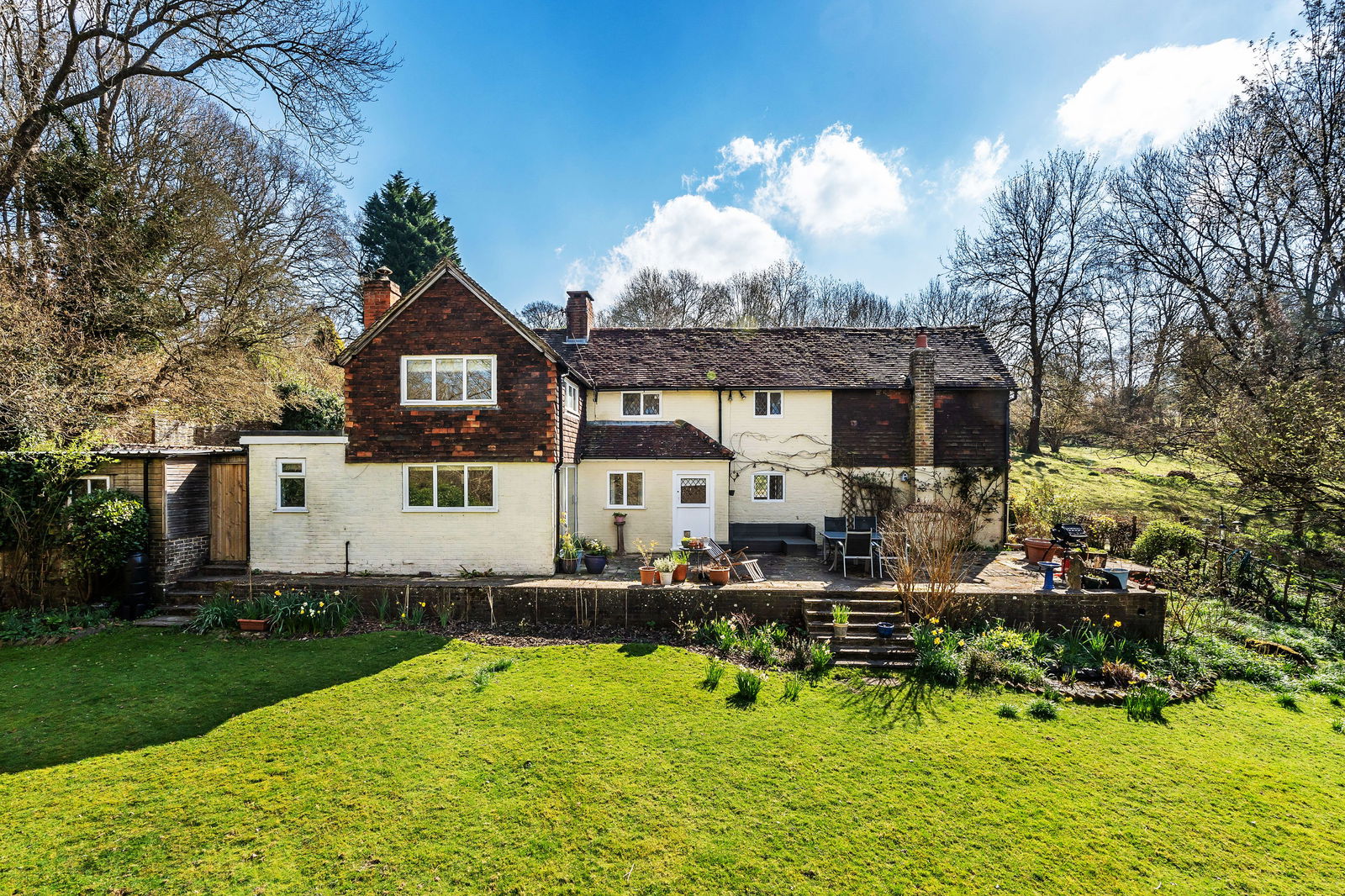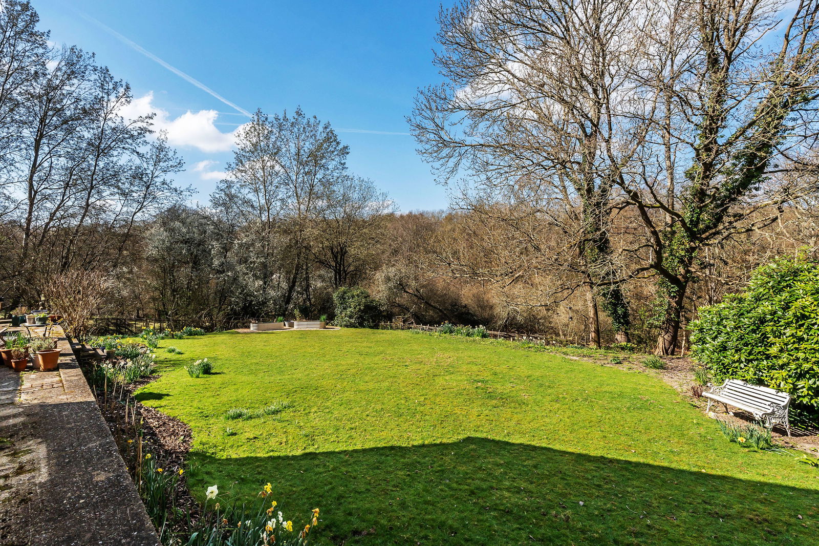 -Gardens directly adjoin acres of wildlife meadow and woodland, enjoying superb views over the countryside.