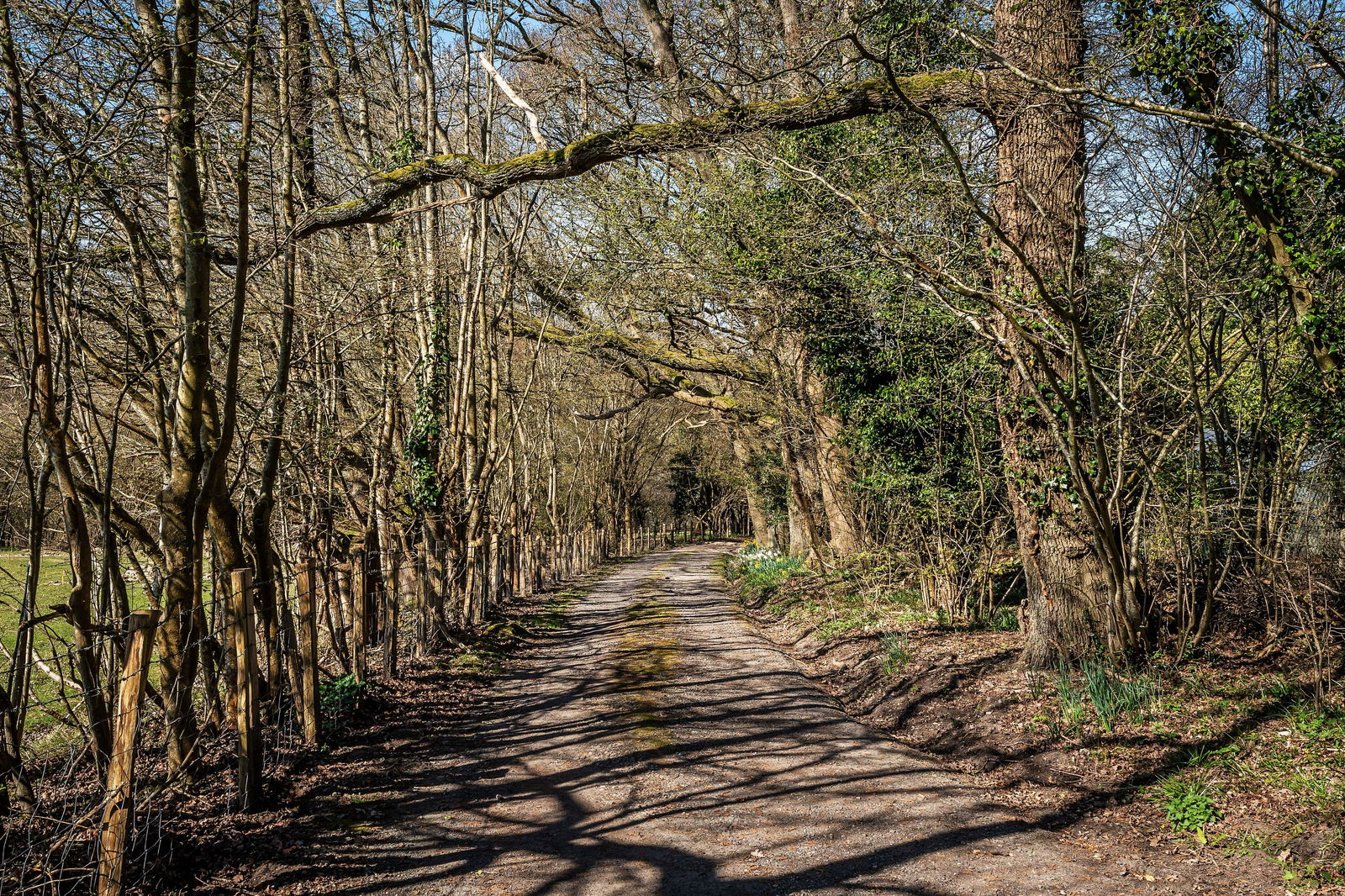 -Driveway to front, flanked by lawns and wild flowers.