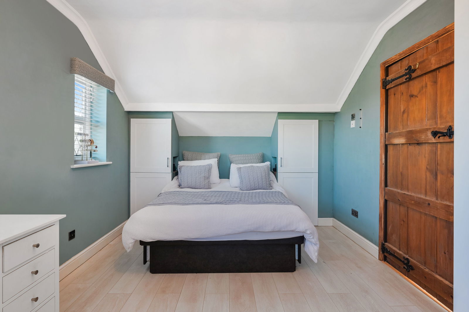Upstairs there are two double bedrooms, one with fitted wardrobes, and both with beautiful views over the garden and National Trust fields, as well as a good size third bedroom to the front. The family bathroom has been thoughtfully designed with a large walk in shower.