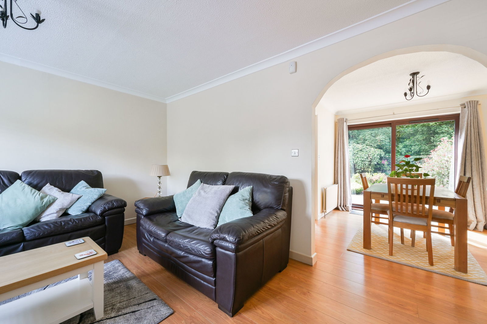 The rear garden is of good size, backing onto woodland with some delightful mature shrubs and a patio, the perfect space for a table and chairs.
