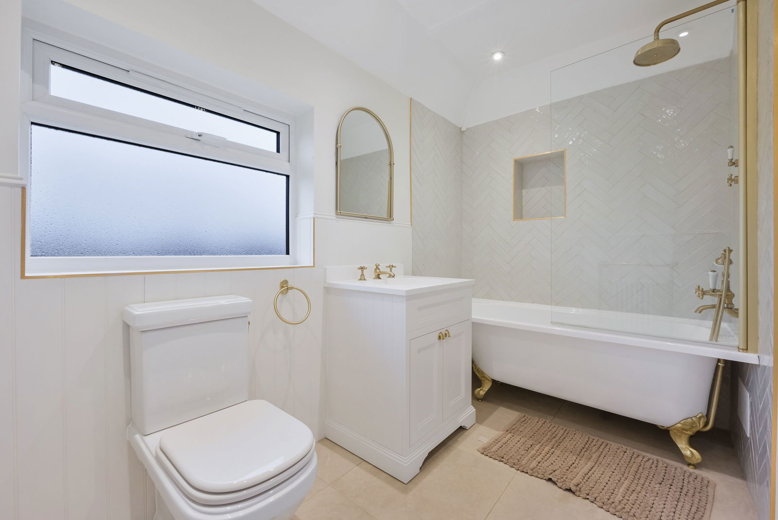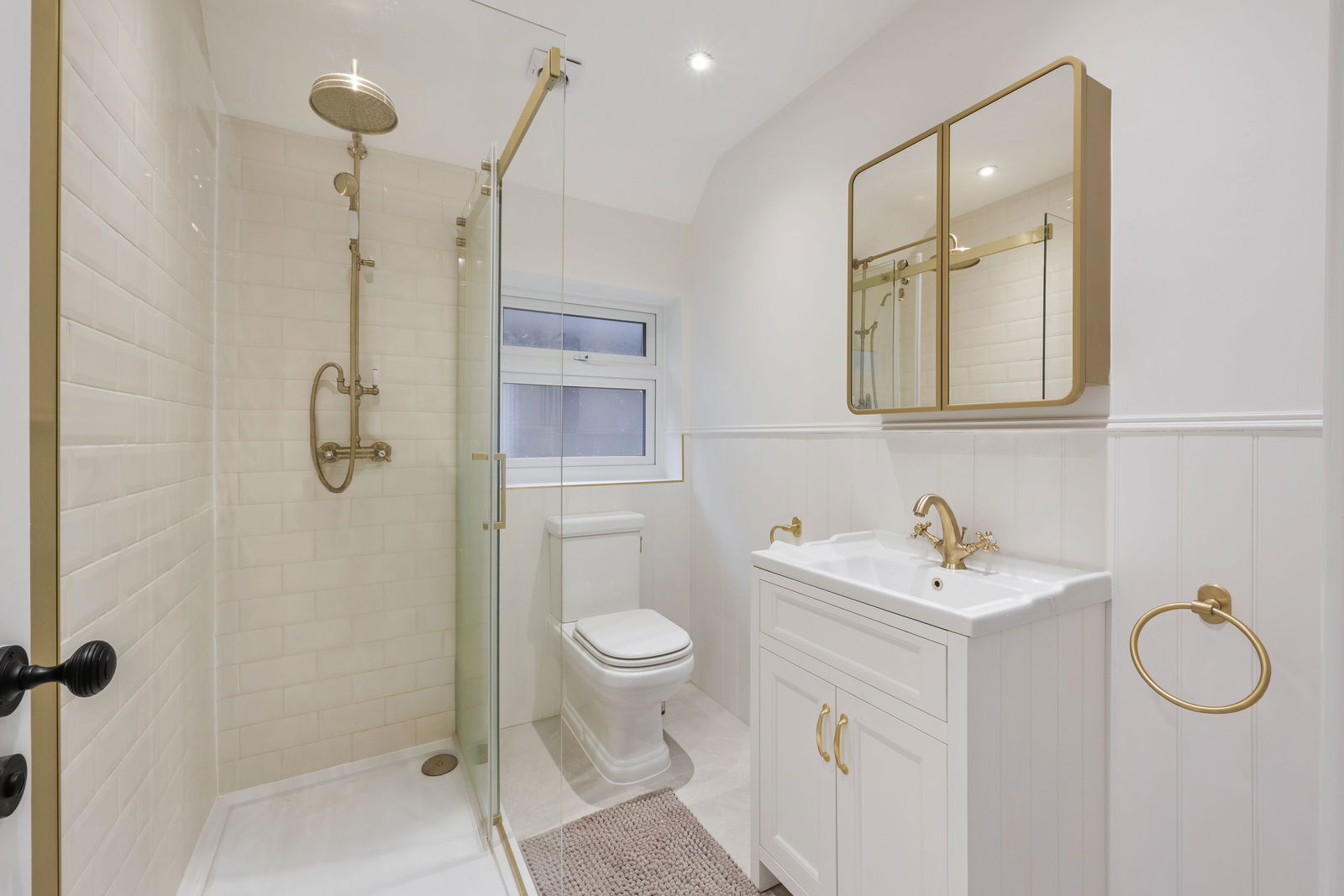 Entering the property at the ground floor, the large hallway leads spacious and bright reception room to the front with new built in full length wall to wall cupboards with storage and hanging space, the spacious dining room overlooks the private rear garden and the new modern kitchen offers integrated quality appliances including double oven, dishwasher and washing machine, gas hob, quartz worktop and features a butler sink and access to rear garden. There is also a downstairs cloak room with tiled floor. On the first floor, there are three double bedrooms, all well-proportioned and a fourth bedroom which could be used as a guest room or study. The largest of these benefits from built-in wardrobes and dressing area, a lovely ensuite with shower cubicle, vanity unit and low level W.C. The bedroom enjoys dual aspects over the garden and views beyond. The family bathroom is beautifully finished with floor-to-ceiling tiling, vanity unit and roll top bath with rain shower over. There is access to a loft, which is boarded and cupboard which houses the Worcester boiler.