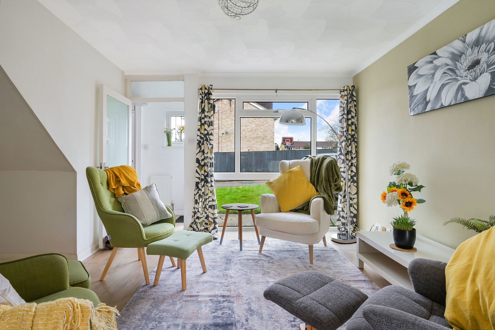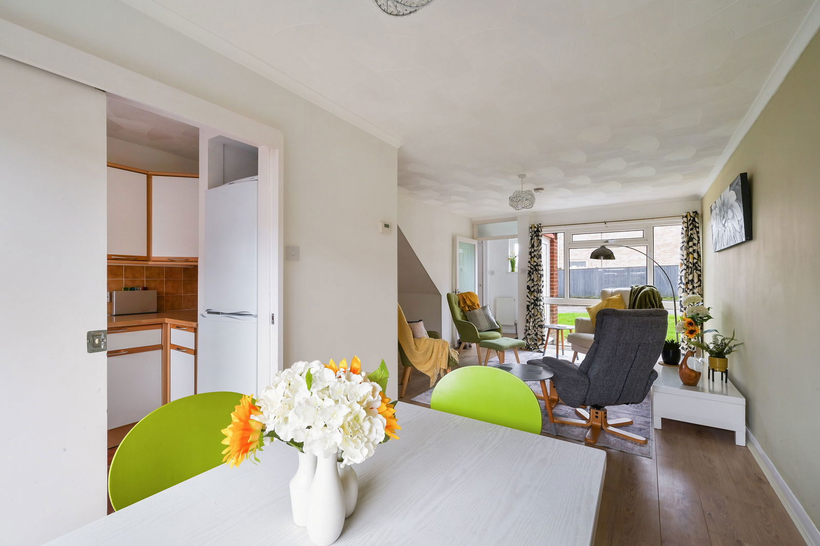The property boasts a spacious open-plan reception and dining area, ideal for entertaining or relaxing, which flows seamlessly into a stylish and well-appointed kitchen with direct access to a private rear garden, a peaceful haven for outdoor dining and leisure. Upstairs, two well-proportioned bedrooms provide comfortable accommodation, with the principal bedroom offering a bright and airy feel, and the second bedroom benefitting from garden views and ample natural light. The contemporary bathroom is tastefully finished and serves both rooms conveniently.