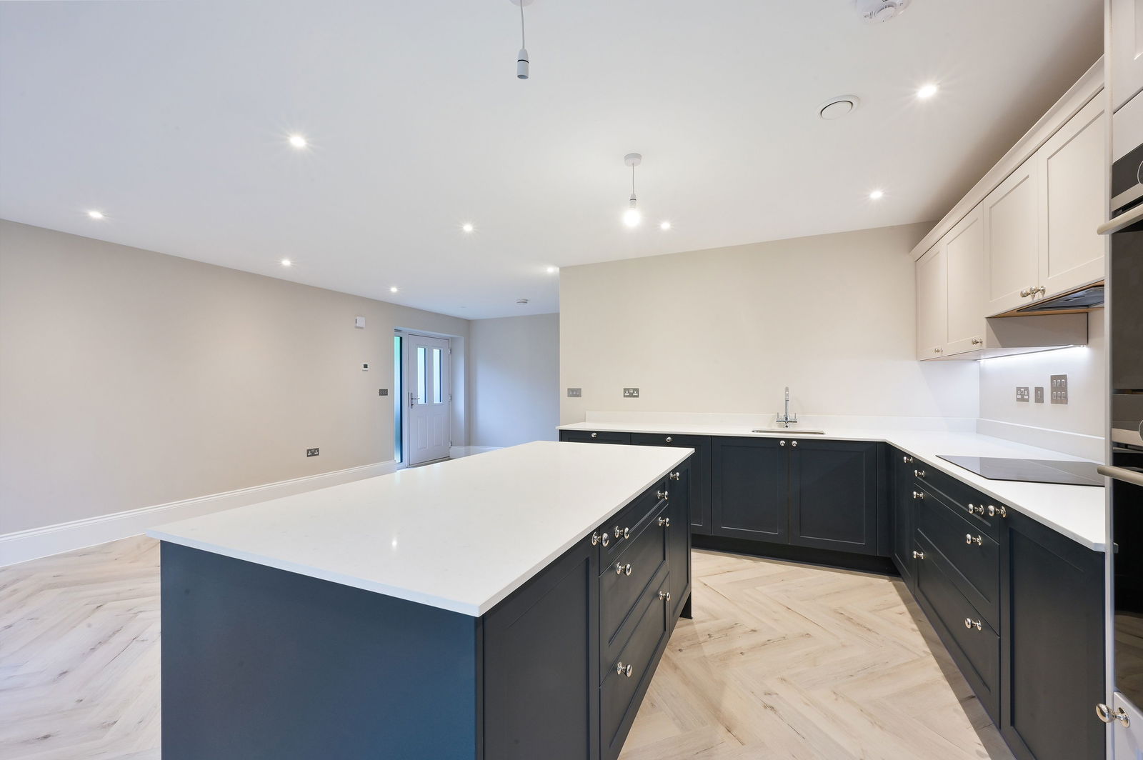 White downlighters fitted to bathrooms, en-suites, hallway and kitchen areas