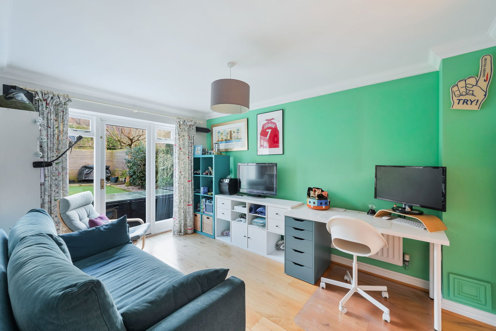 The bright and airy sitting room features an ornate fireplace with plenty of space for relaxing, there is a further reception/snug room which is currently being used as a study/ entertainment room- this room offers great flexibility to be used for different families needs.