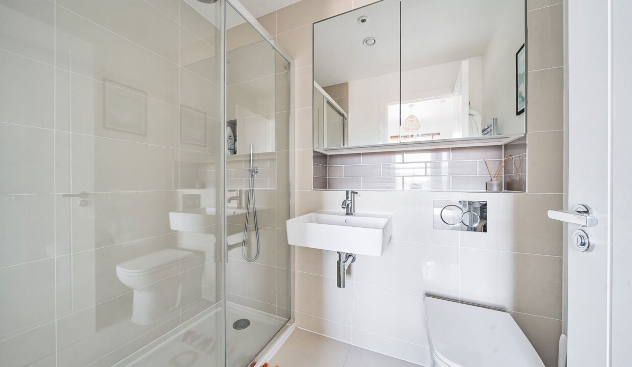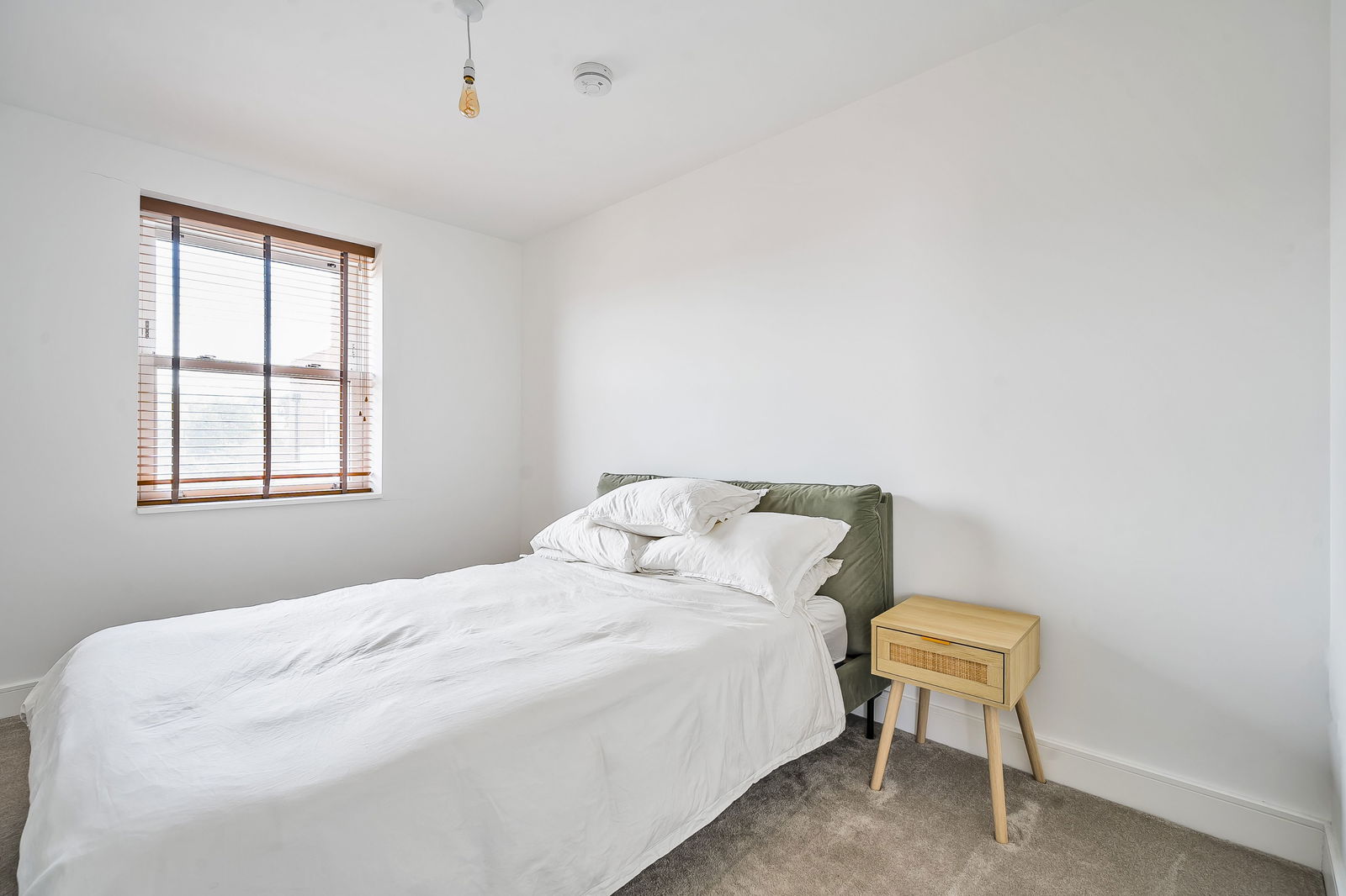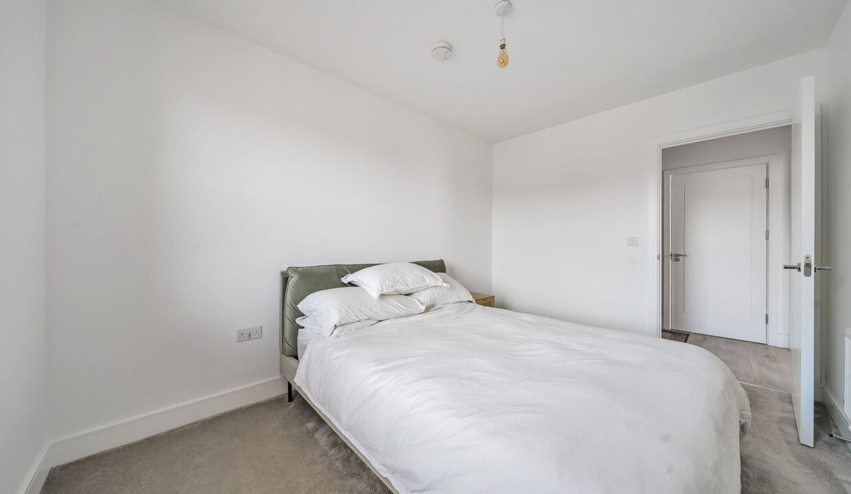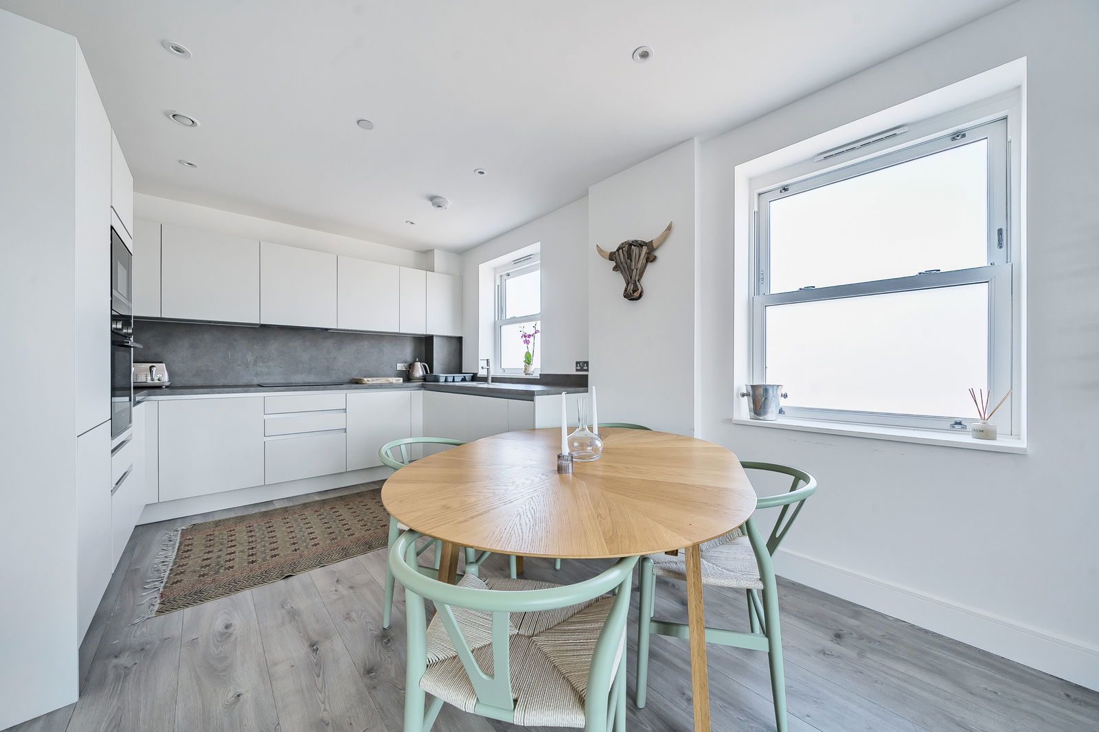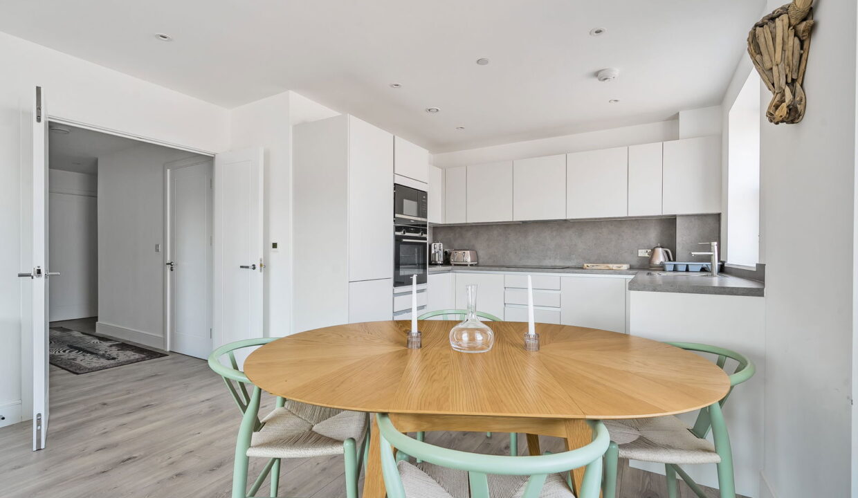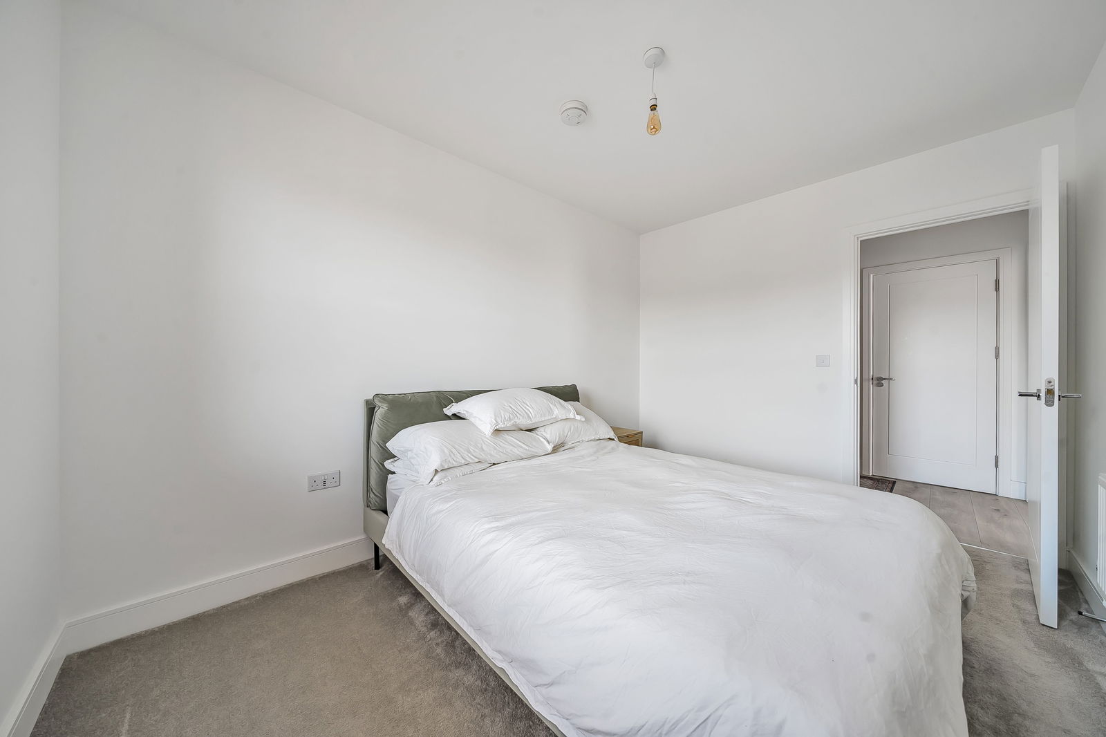 The main bedroom features a modern ensuite shower room and a distinctive angular layout that adds character and charm. A second double bedroom offers versatility for guests, a home office, or a growing family. The family bathroom is finished to a high standard, while a separate utility room provides further convenience and storage options, enhancing the apartment’s practicality.