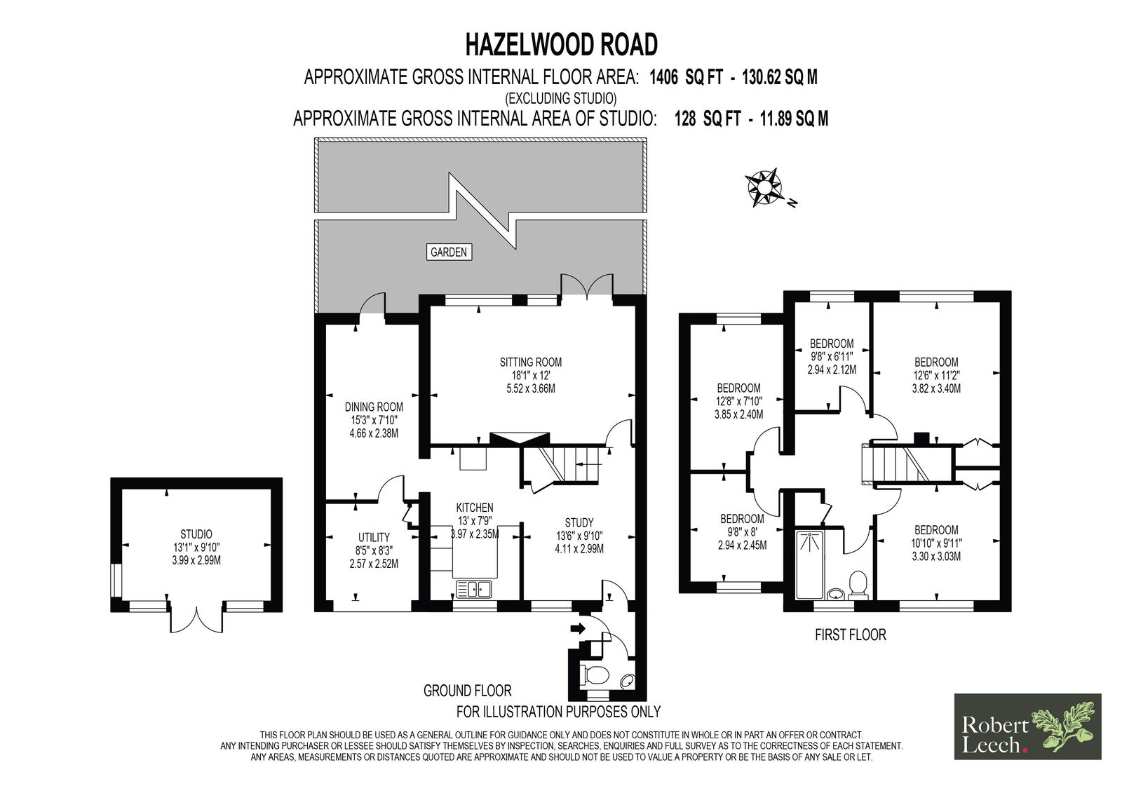 Set over approximately 1,406 sq ft (excluding the 128 sq ft studio), this home is ideal for growing families or professionals needing flexible working and living spaces.