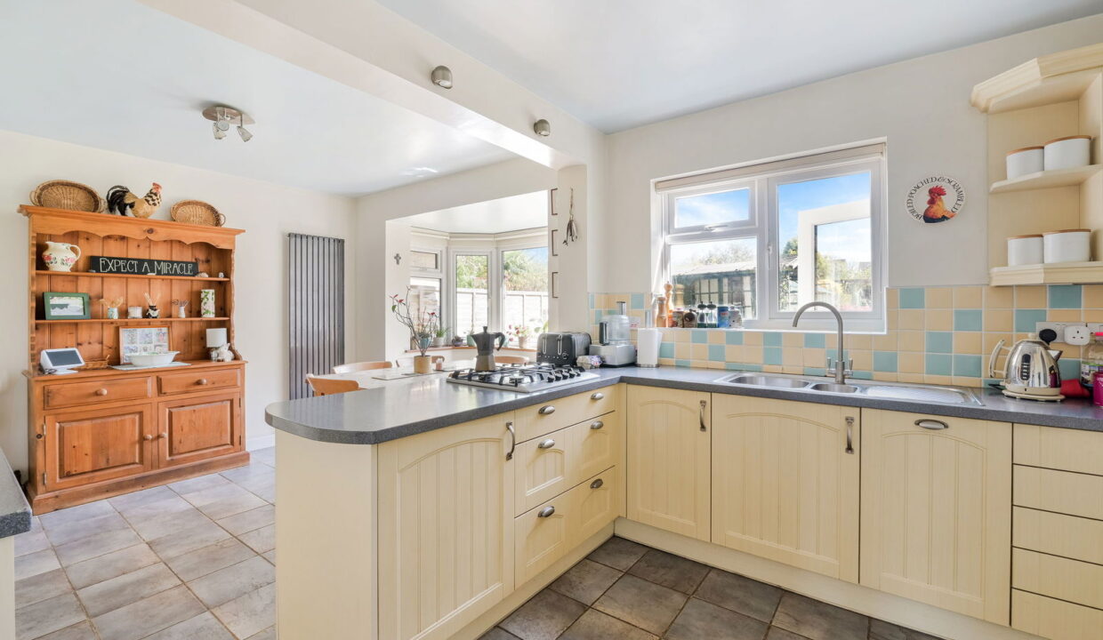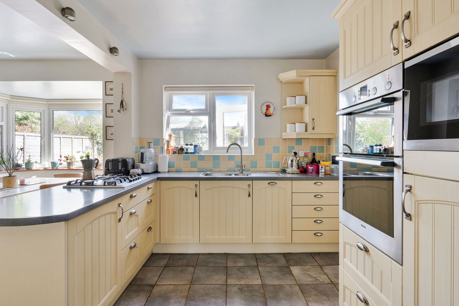 - Stylish open-plan kitchen/dining area with bay window