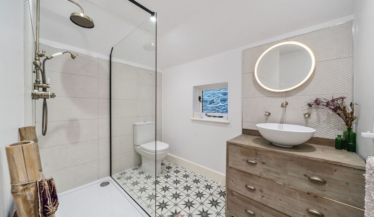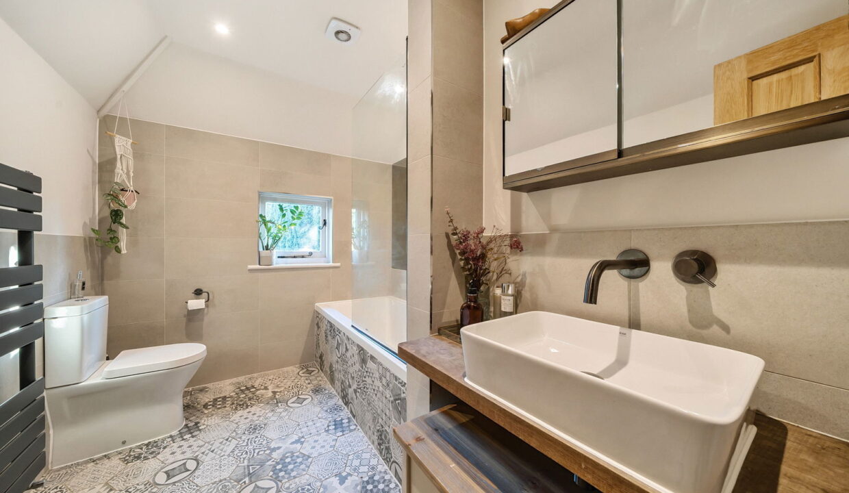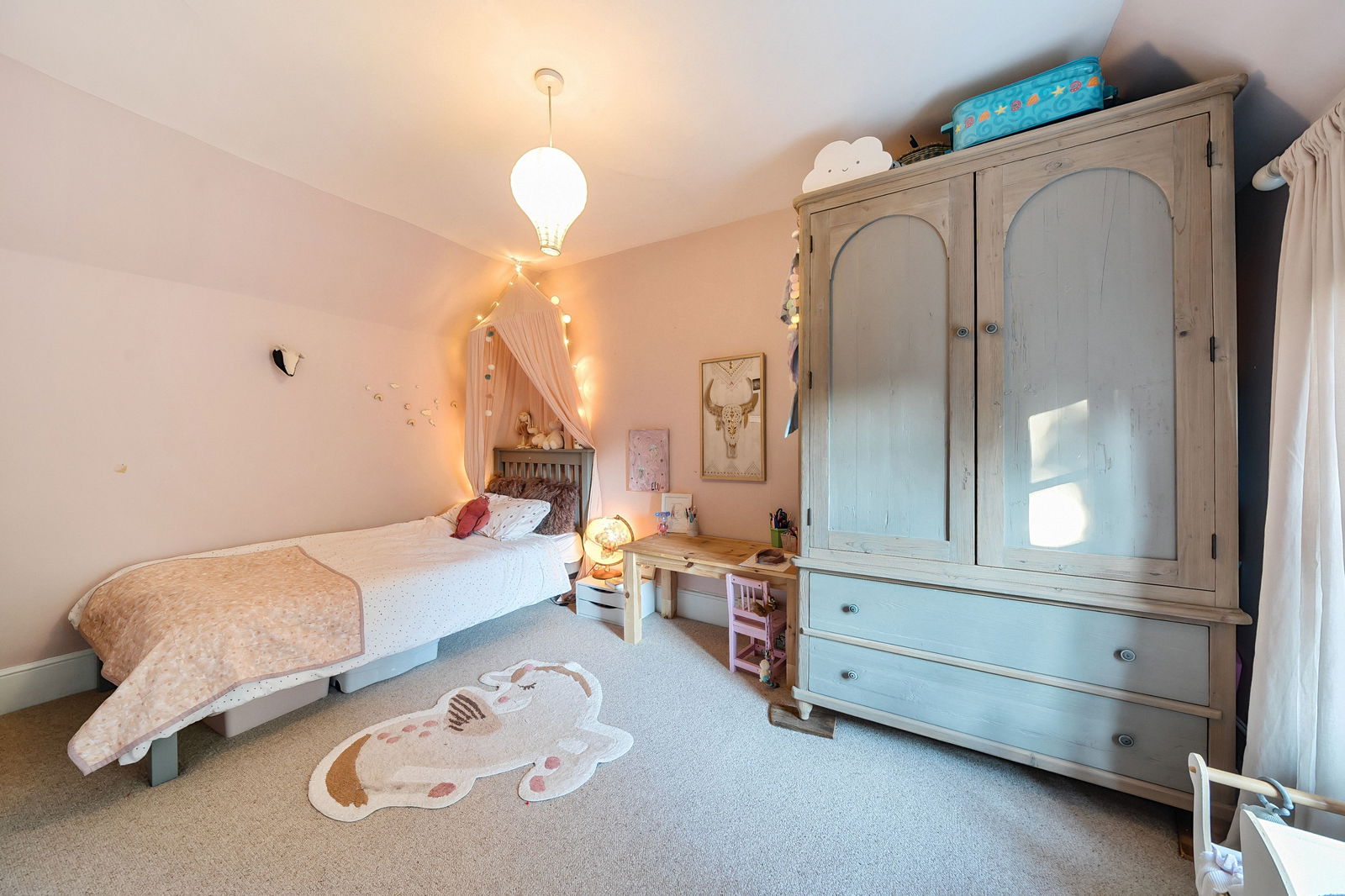 Upstairs, the principal bedroom is a spacious sanctuary, complete with sash windows, a charming fireplace, built-in storage, and an ensuite shower room. Two further double bedrooms, one overlooking the front and the other the rear garden, provide ample space for family or guests. A well-appointed family bathroom with garden views completes the first-floor accommodation.