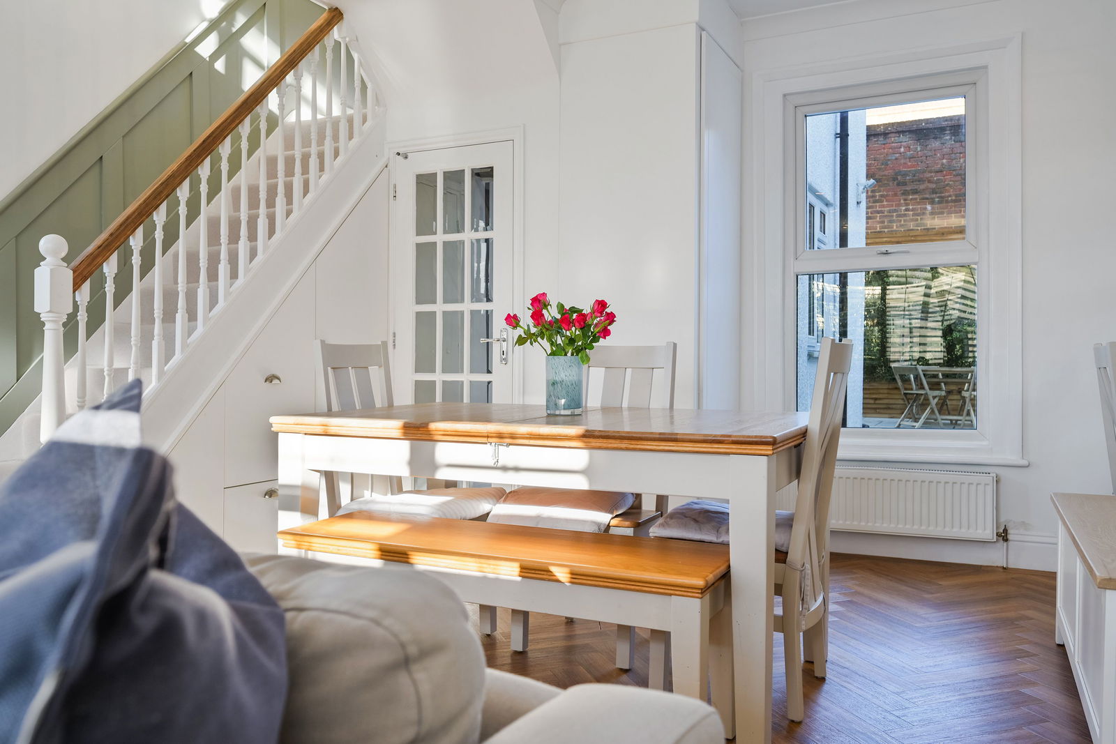 This semi-detached Victorian home on Holmesdale Road combines period character with thoughtful modern updates. Once home to B. L. Hester’s Sweet Shop in the 1940s, it now offers bright, well-planned spaces designed for contemporary living. The house benefits from a south-facing front, flooding the principal open-plan living areas with natural light and warmth. To the rear, the rooms enjoy a quieter, more private outlook, creating a calm retreat from the street.