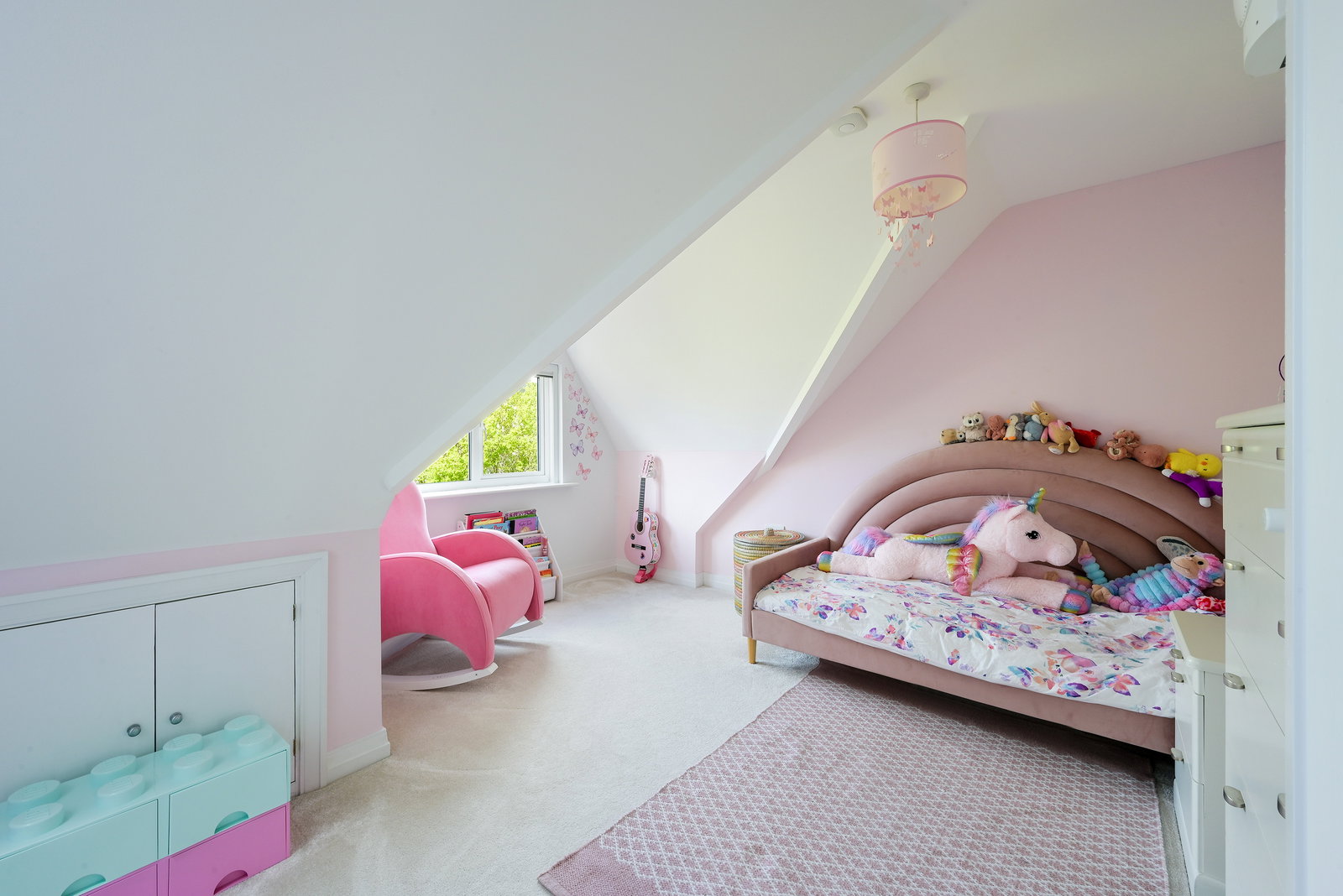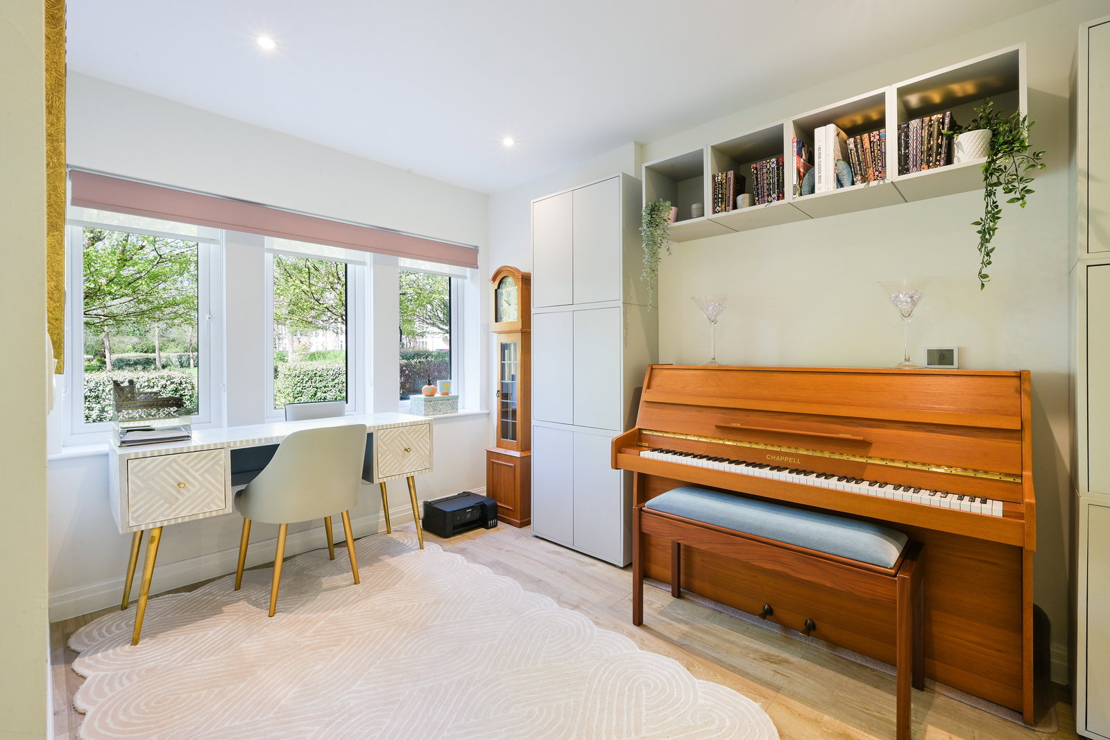 On the top floor, the home offers two further double bedrooms, both generously proportioned and versatile, along with a sleek family bathroom room. These rooms are ideal for use as bedrooms, guest rooms, or even additional home office space.