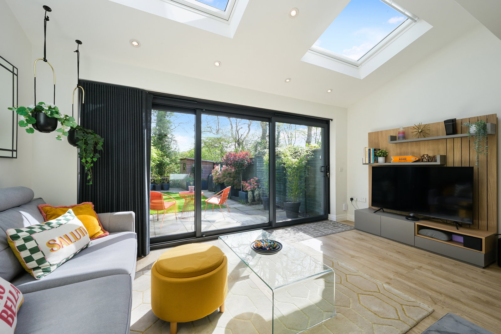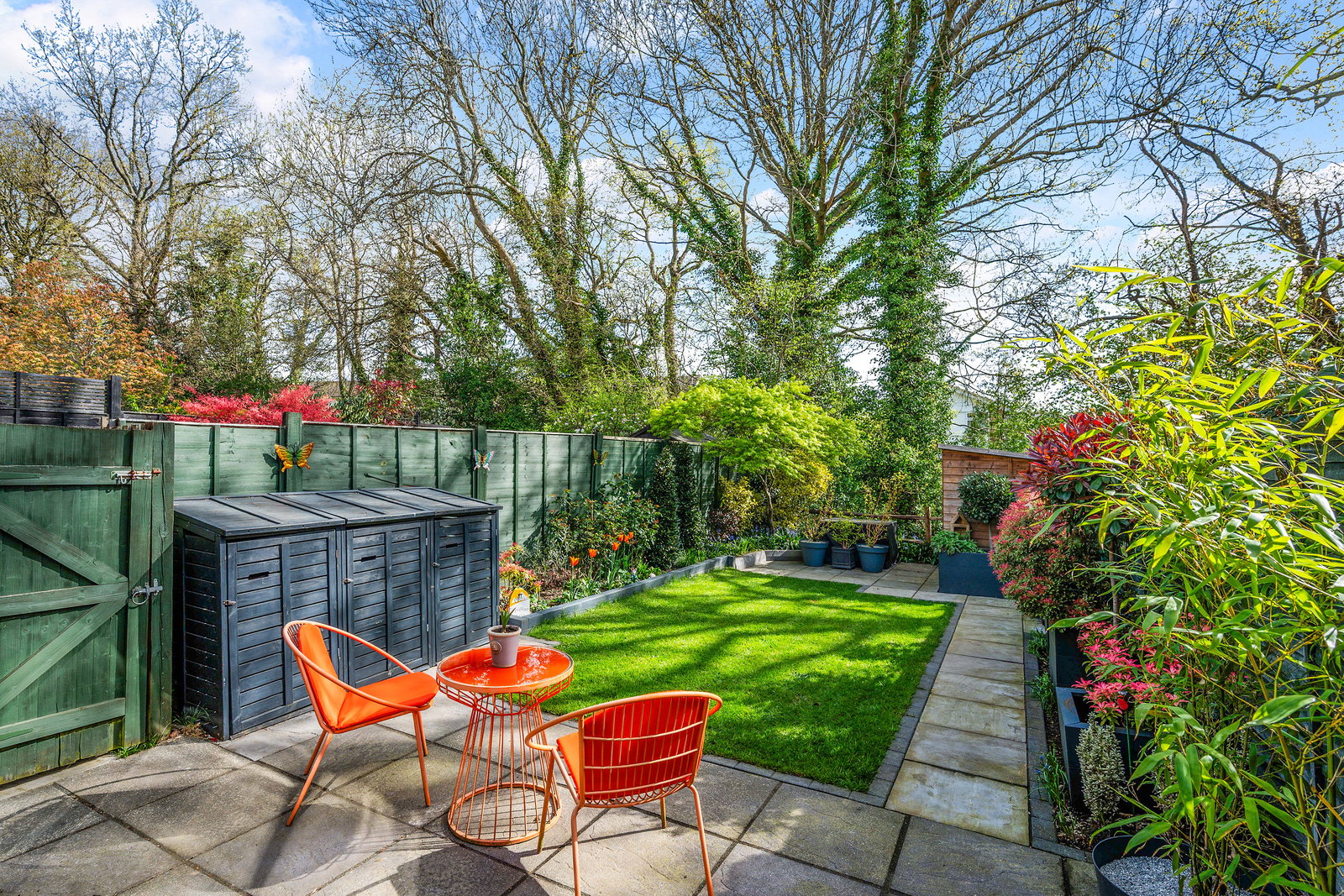 The landscaped rear garden includes a patio, lawn and raised flower beds, ideal for al fresco dining or unwinding in peace. To the front of the property there is parking for two cars.
