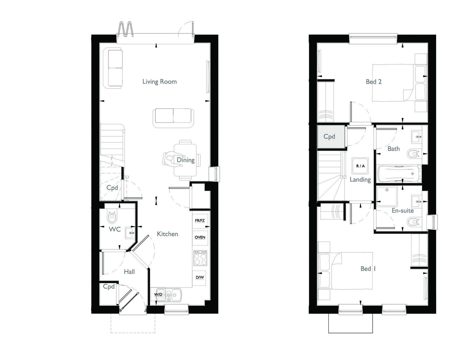 Upstairs, there are two bedrooms—one of which benefits from an en-suite shower room—as well as a separate bathroom.