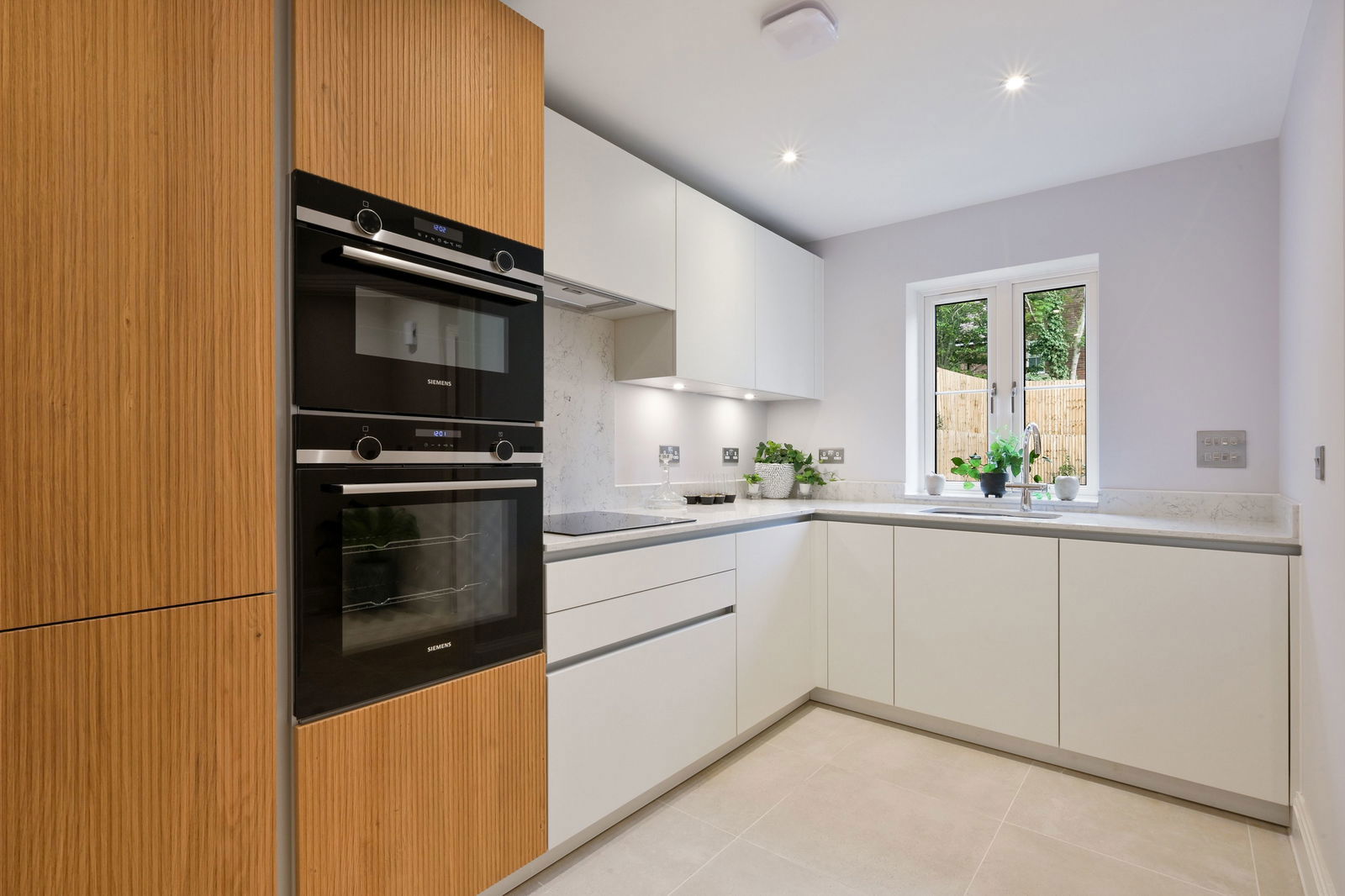 Bespoke range of fully fitted LEICHT kitchen cabinets featuring 20mm Silestone quartz work surfaces and splashbacks, pelmet lighting, and a mixer tap with three water functions, including steaming hot water up to 98˚C