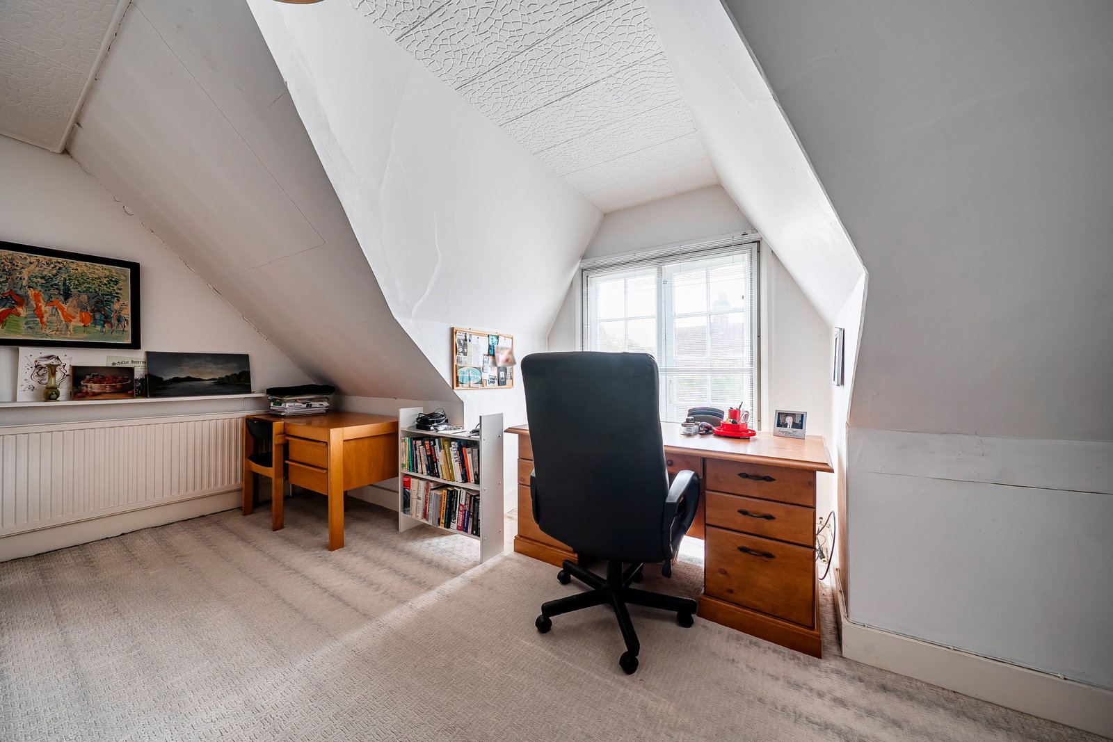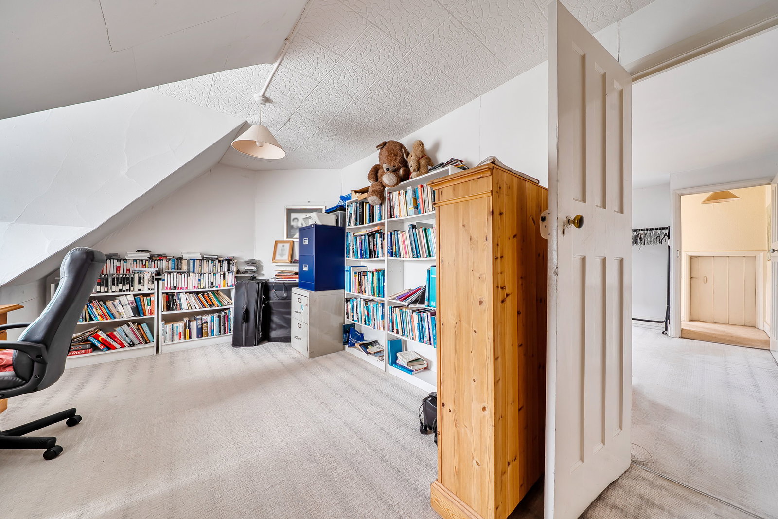 On the first floor, three well-sized bedrooms are served by a family bathroom, with the principal bedroom enjoying a bright bay-fronted aspect. The second floor offers two further bedrooms along with a useful loft area, ideal for storage or potential conversion subject to the necessary consents, making this an excellent home for growing families or those needing flexible work-from-home space.