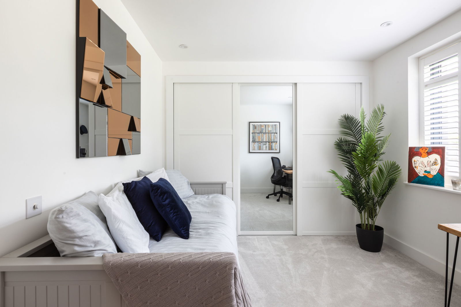 The accommodation briefly comprises entrance hall with cloaks cupboard and media store, triple aspect open plan living/dining room area with full length folding doors to the garden and wood flooring throughout, kitchen area with quartz work surfaces, cooking and breakfast island plus Neff integrated appliances and ceramic tiled flooring. Leading off the entrance hall is a downstairs bathroom and two double bedrooms.