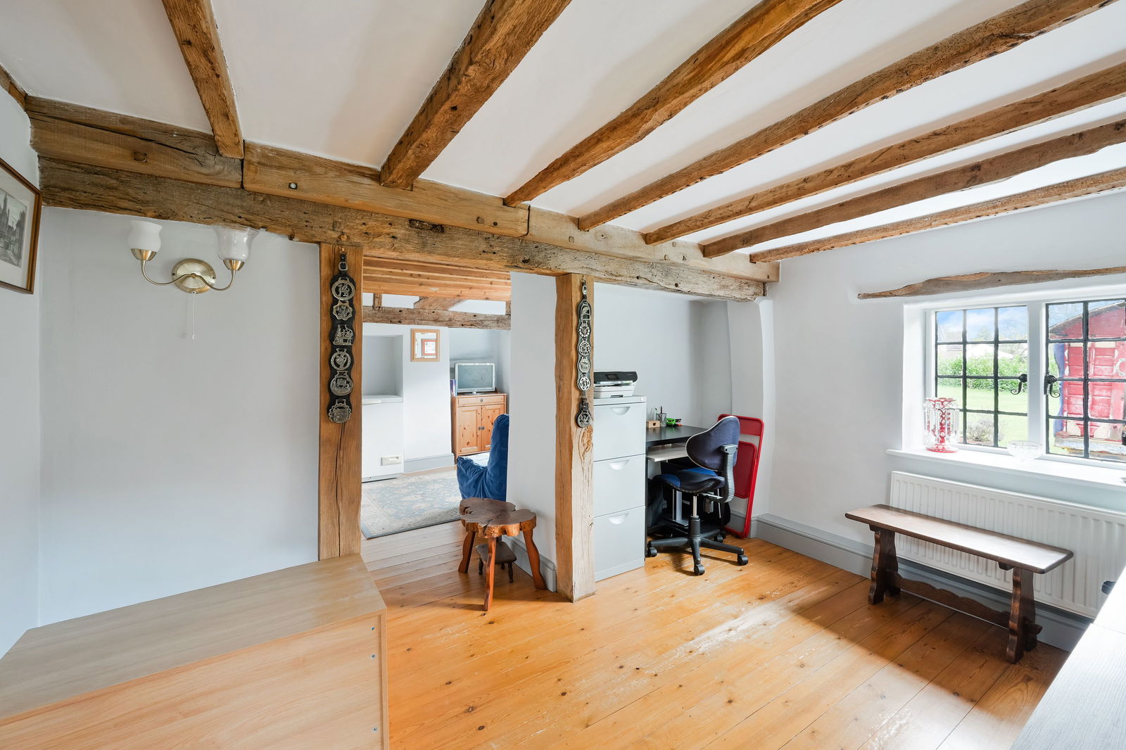 The accommodation is both substantial and flexible, with the ground floor centred around an impressive sitting room featuring an original inglenook fireplace with log-burning stove, exposed timber beams and a wonderful sense of warmth and atmosphere. Further reception space includes a snug and a separate study, ideal for home working or quieter retreat. The kitchen/breakfast room is well proportioned and forms the heart of the home, supported by a separate utility room and additional ground floor facilities that enhance everyday practicality. Throughout the property, exposed beams and period detailing are complemented by well-balanced room sizes, giving the house a welcoming and timeless feel.