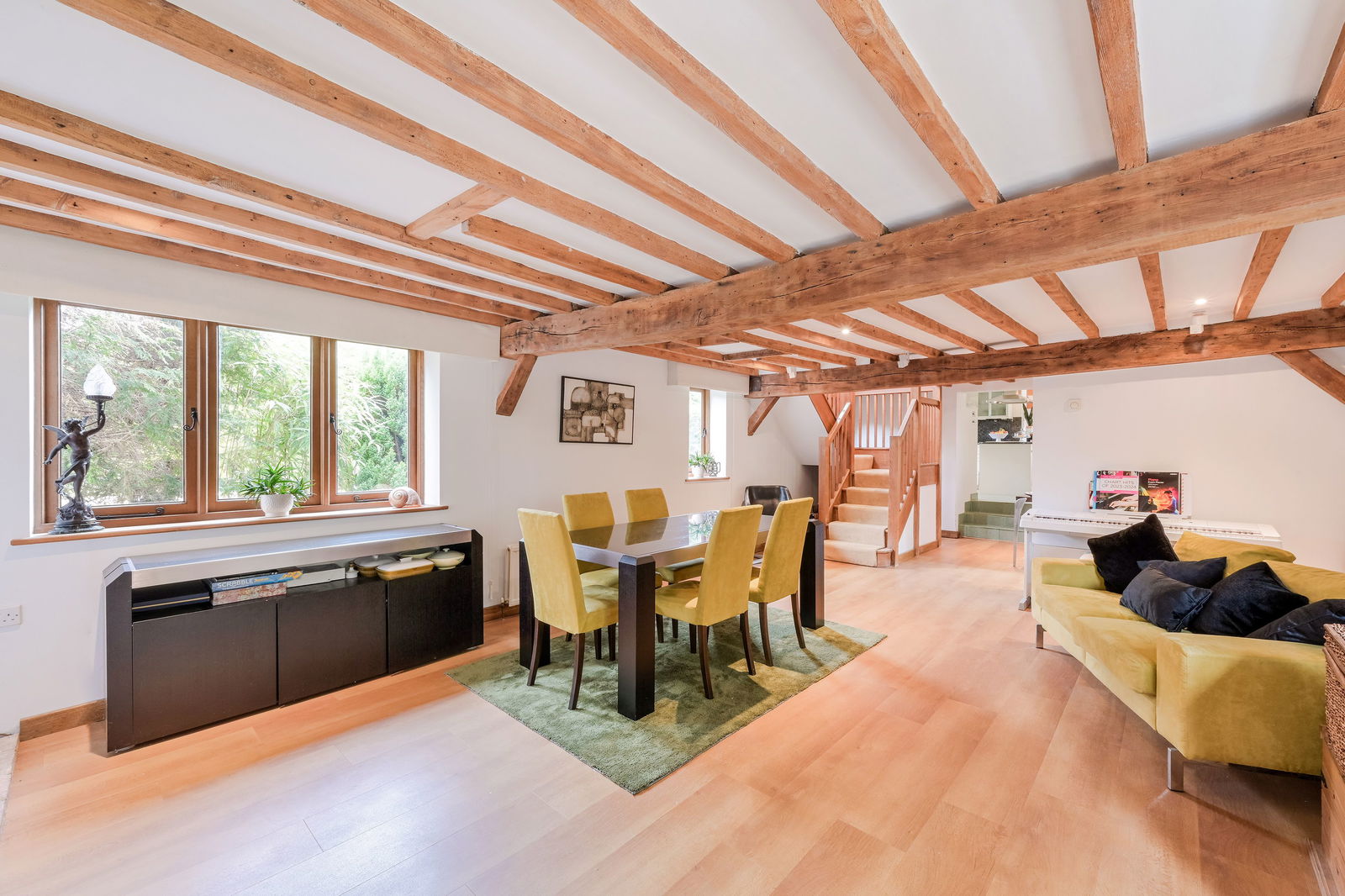 This magnificent Oast House retains many original features, including the iconic squared tower, exposed oak beams, and vaulted ceilings, while benefiting from thoughtful modern updates throughout. The generous layout comprises multiple reception rooms filled with natural light, creating an inviting and flexible living space that’s perfect for both entertaining and day-to-day family life.