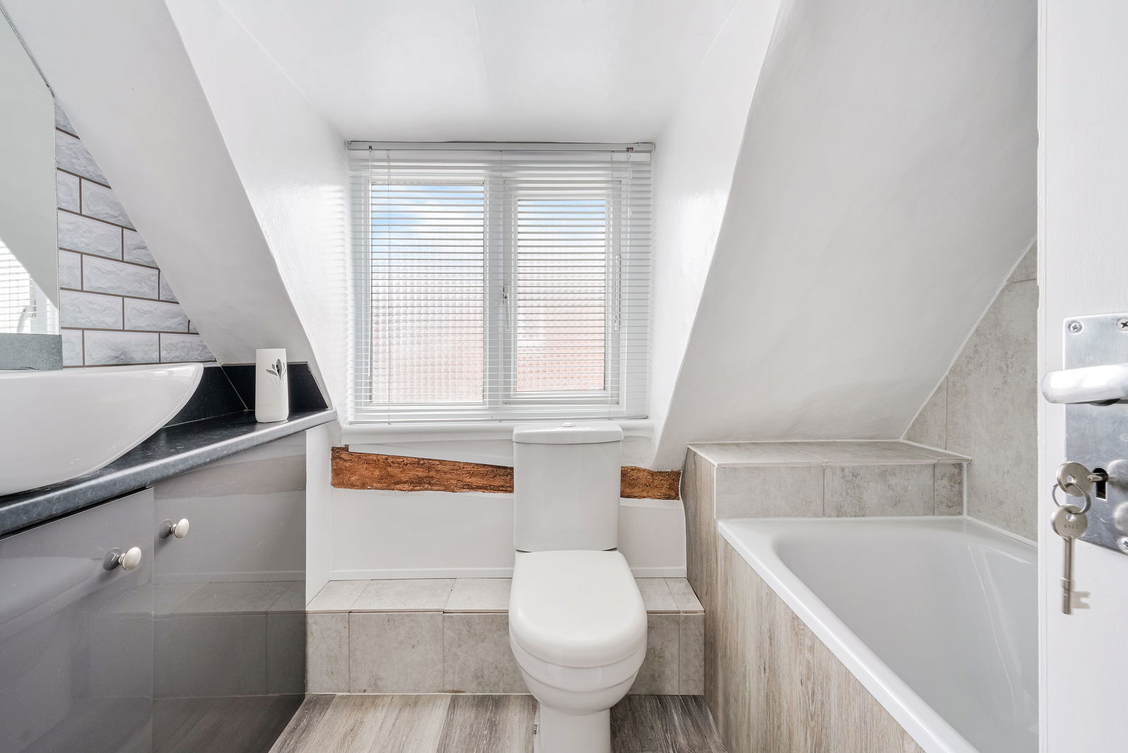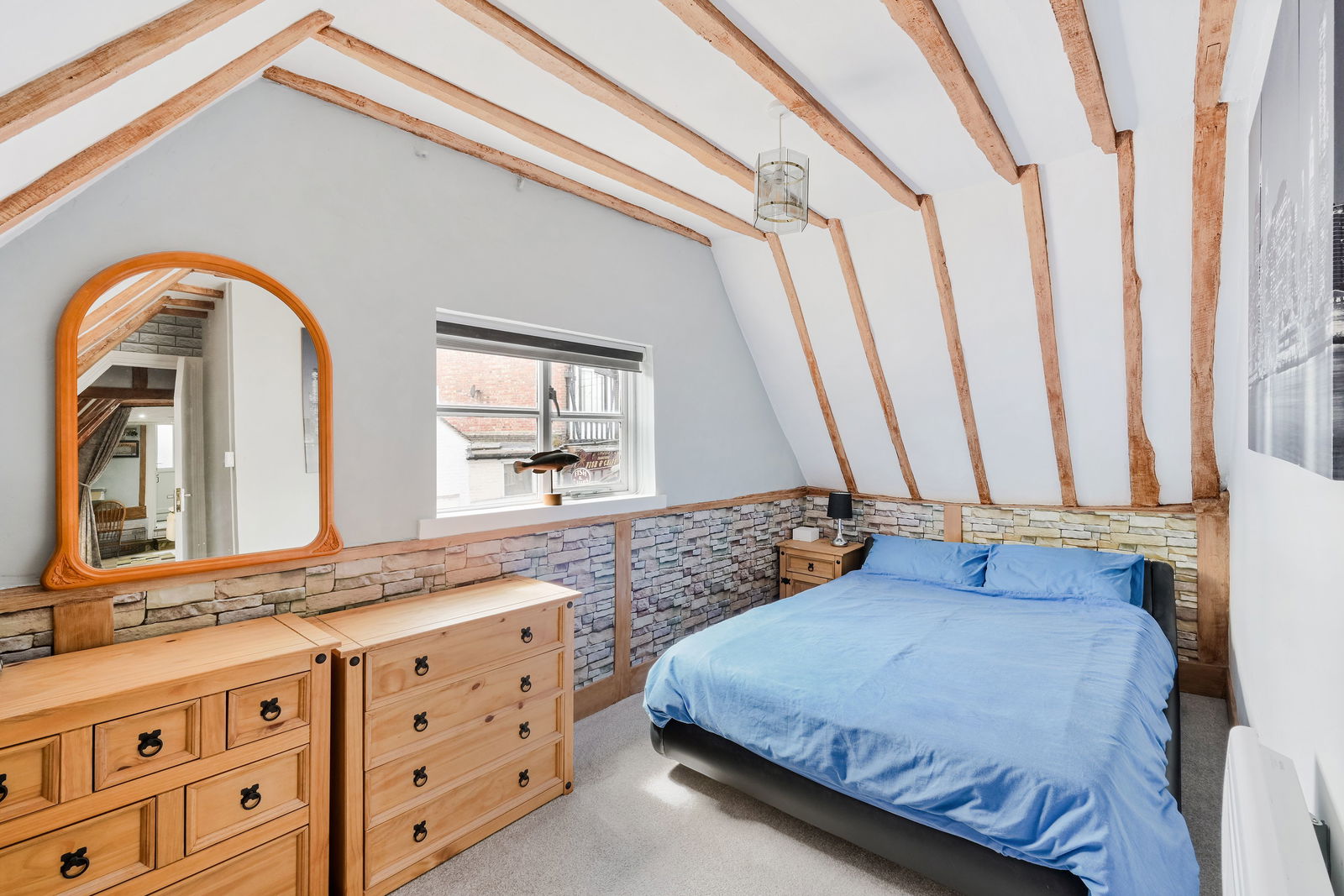 There are two good sized double bedrooms with beamed ceilings and walls. The refitted bathroom comprises of white suite with shower over bath and tiled walls, with self contained storage for fitted washer/dryer. Stepping back outside, there is a private terrace area and allocated parking space.