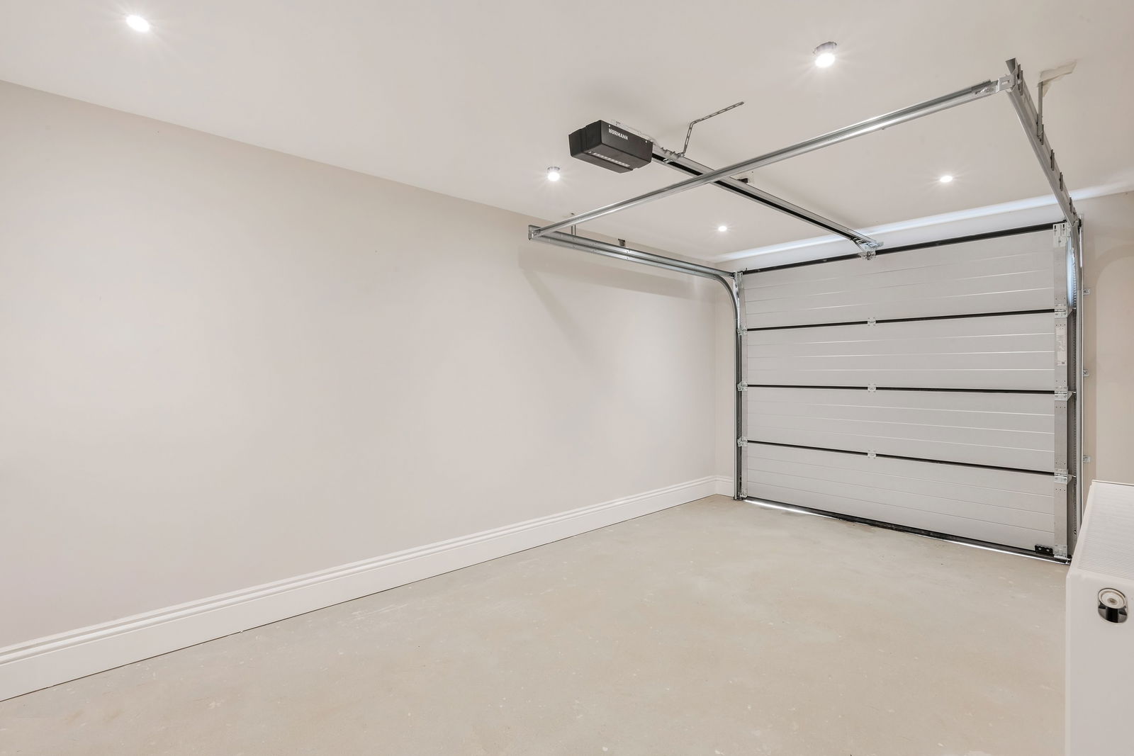 - Private garage with power, light, and automated garage doors and private driveway parking.